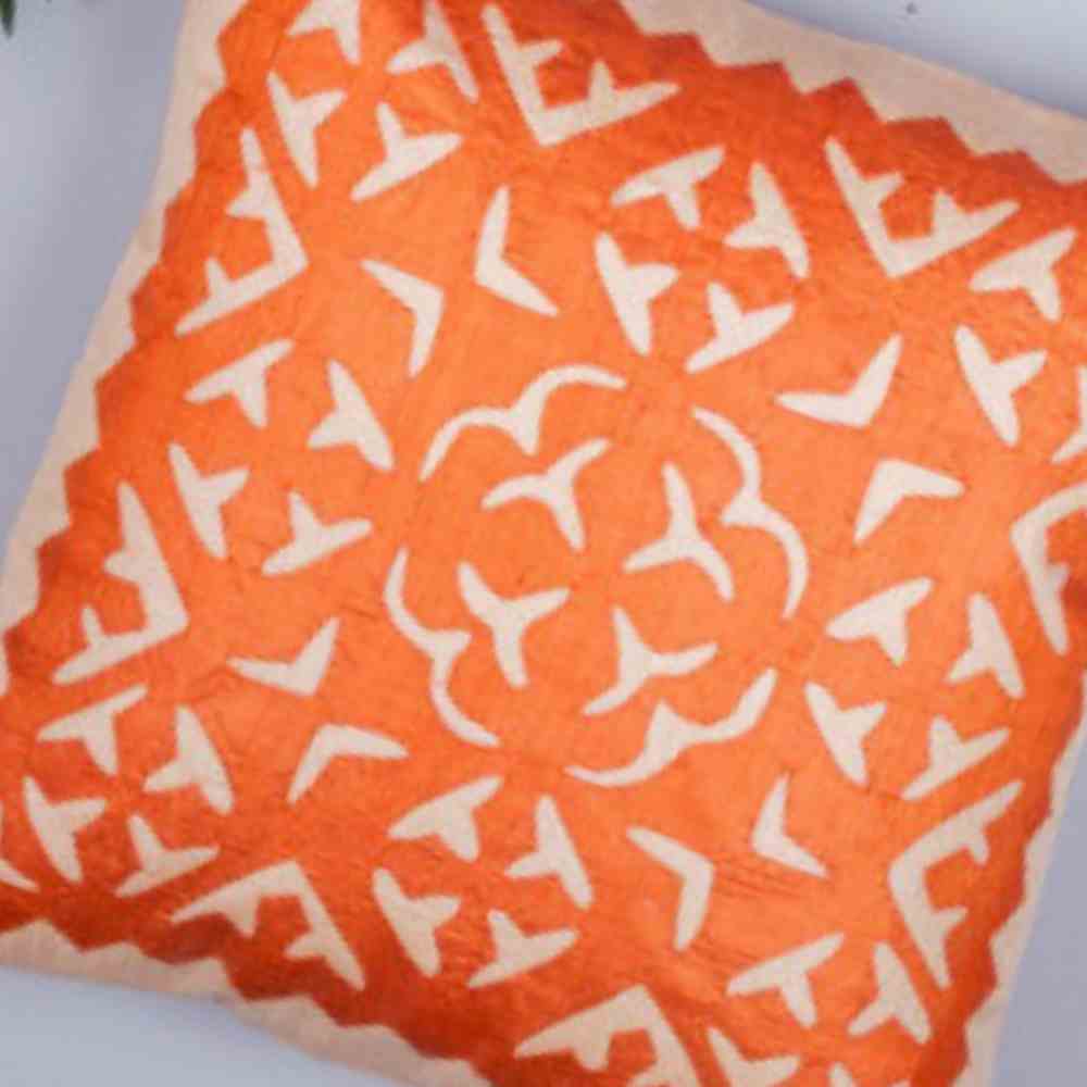 5 handcrafted applique cushion covers of size 16 x 16 inch _ Orange