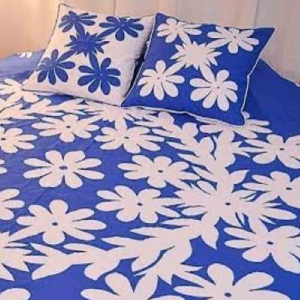 This royal blue and white applique bedsheet is a perfect blend of sophistication and style. The vibrant royal blue background combined with intricate white applique designs creates a beautiful contrast, adding a touch of elegance and charm to your bedroom.