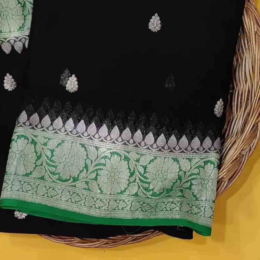 **Product Name:** Black Print Khaddi Chiffon Sareernrn**Description:**rnIntroducing our Black Print Khaddi Chiffon Saree, a chic and versatile ensemble that combines sophistication with contemporary flair. Crafted from premium chiffon fabric, this saree features a classic black base adorned with intricate print detailing, adding depth and visual interest to the design.rnrnThe lightweight and breatha