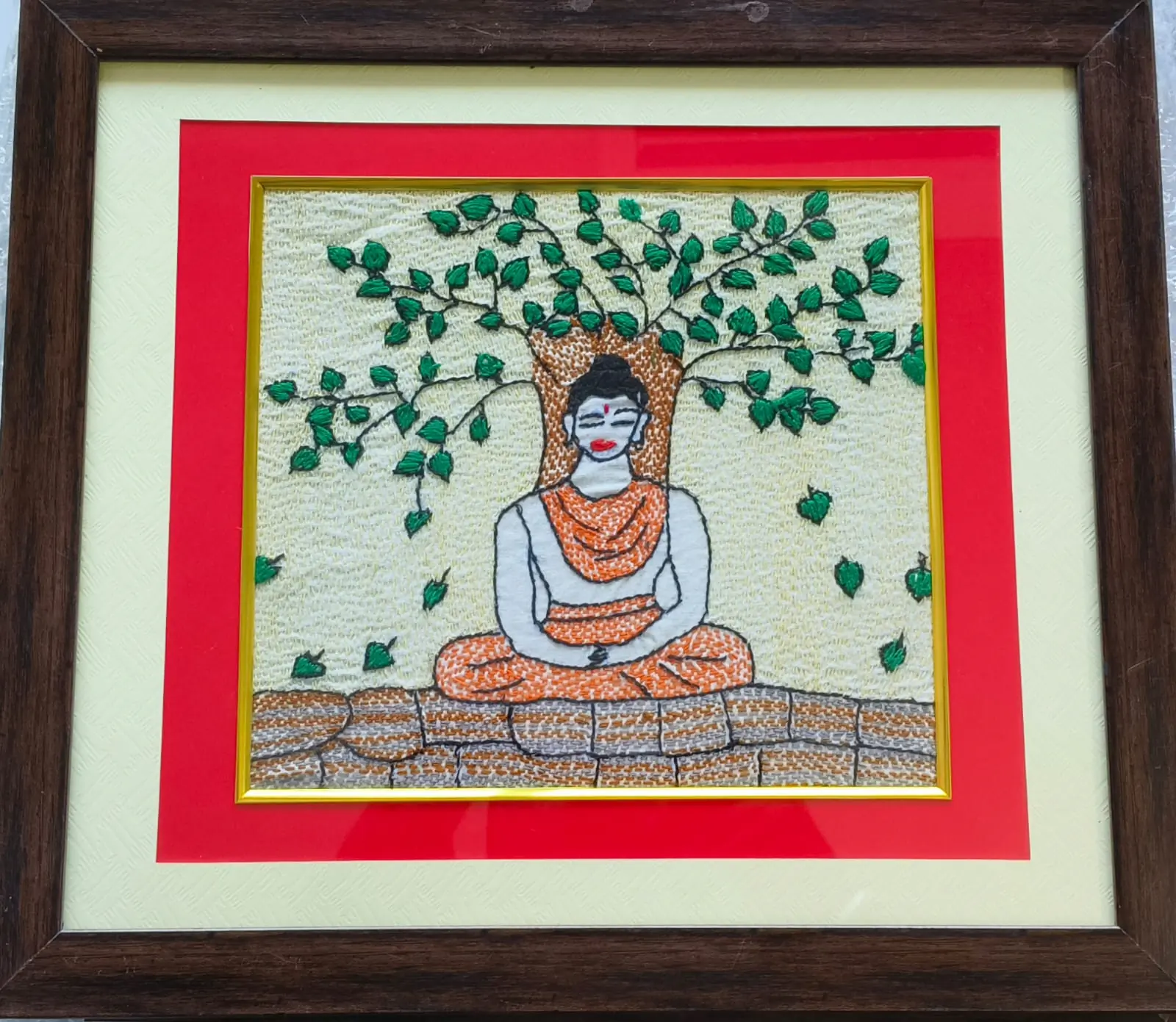 Finish: Textured Hand-Embroidered Artwork with Polished Wooden Frame