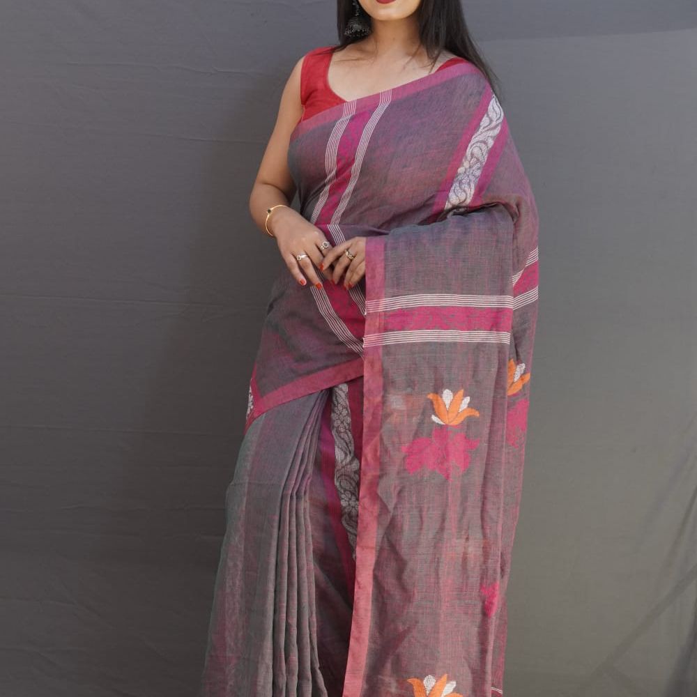 Elevate your style with this Elegant Linen Jamdani Saree, a perfect blend of comfort, tradition, and contemporary flair.