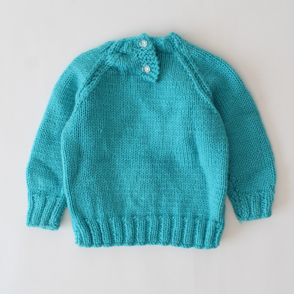 Color: The sweater is a bright turquoise shade which is a vibrant blue green color.