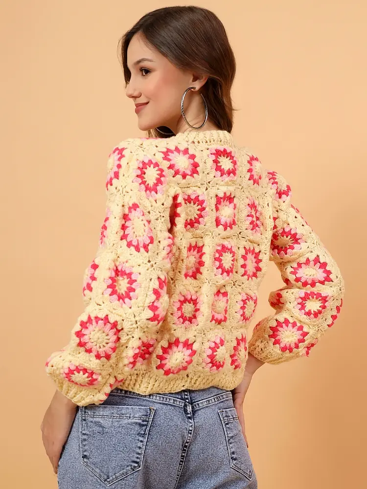 Buttercream Bloom Hand-Crochet Sweater