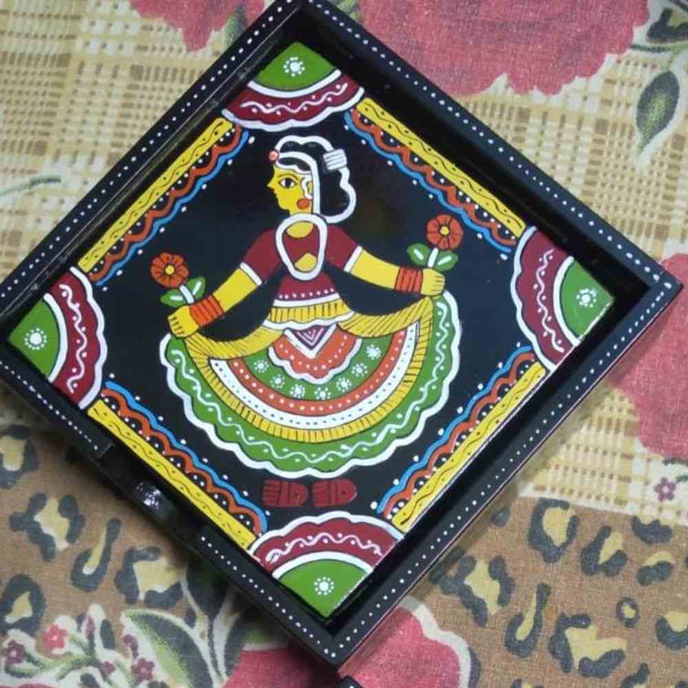 • Handcrafted black tea coaster with traditional Tikuli painting