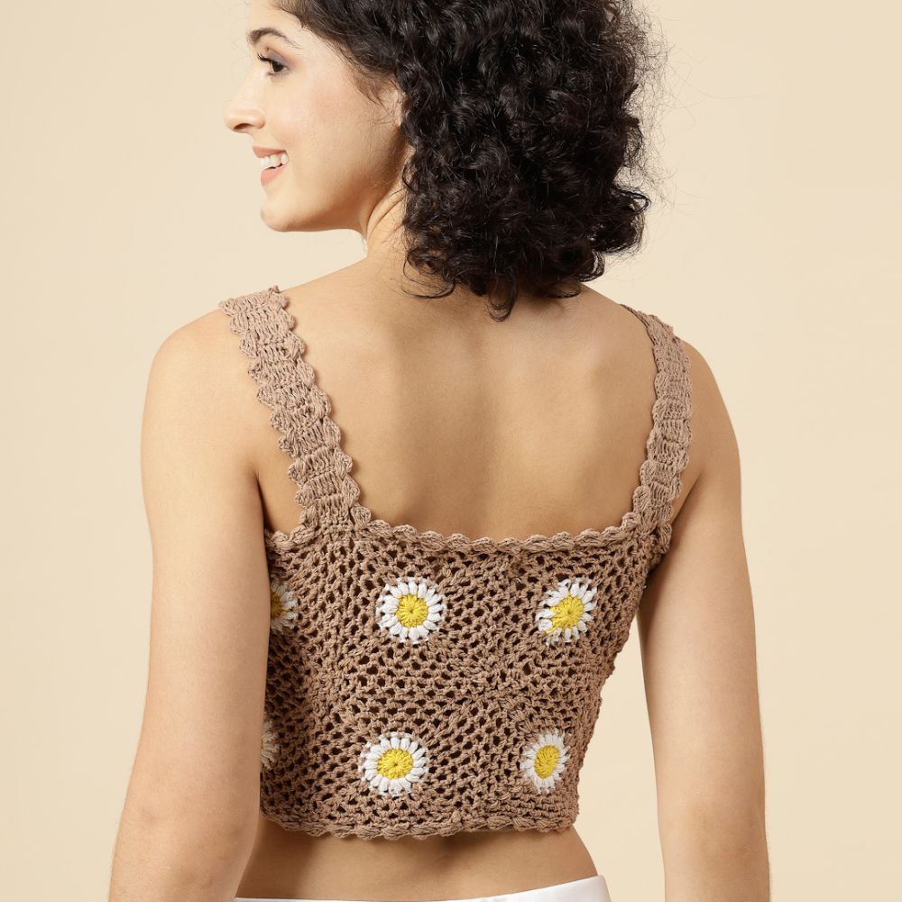 Daisy Meadow Hand-Crocheted Crop Top – Cocoa Brown