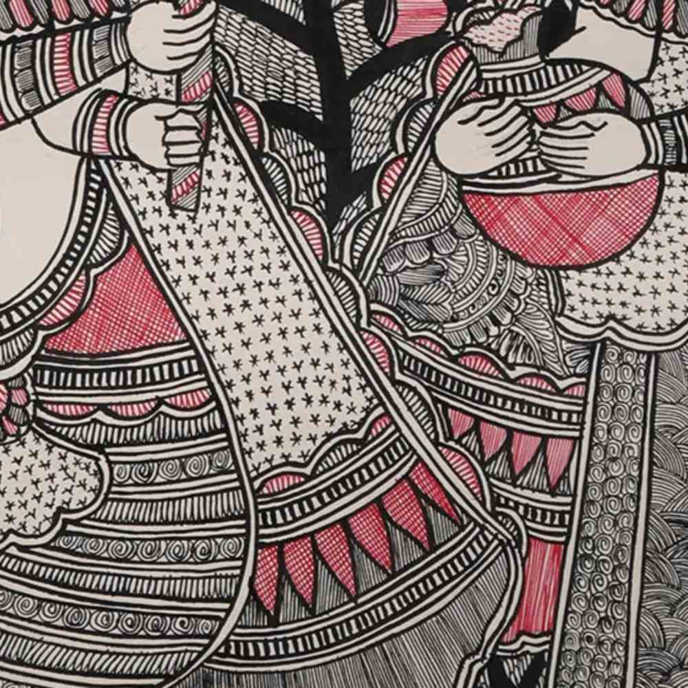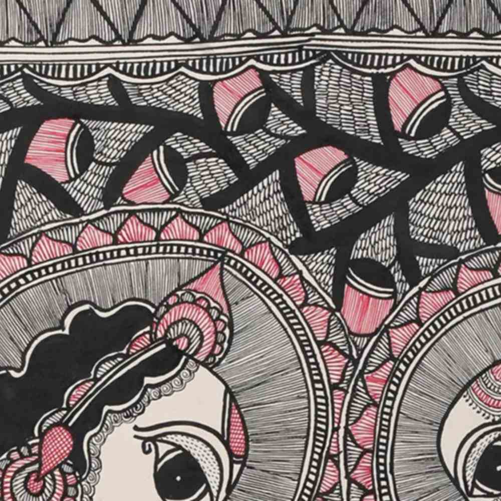 Divine Harmony: Lord Krishna and Radha Madhubani Painting