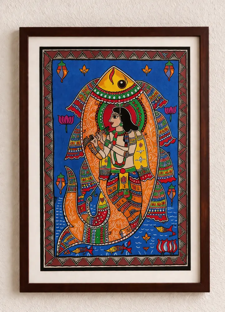 Divine Krishna Madhubani Art Handmade Mythological Painting