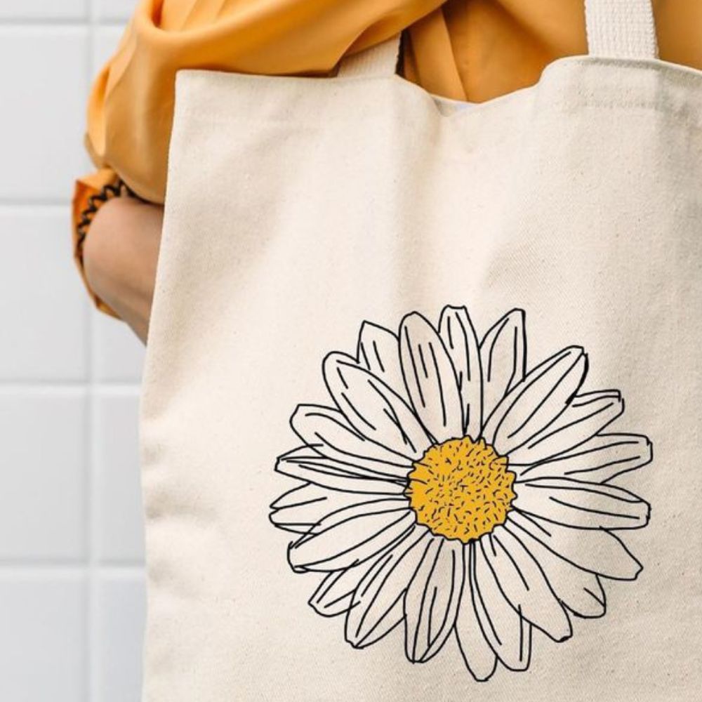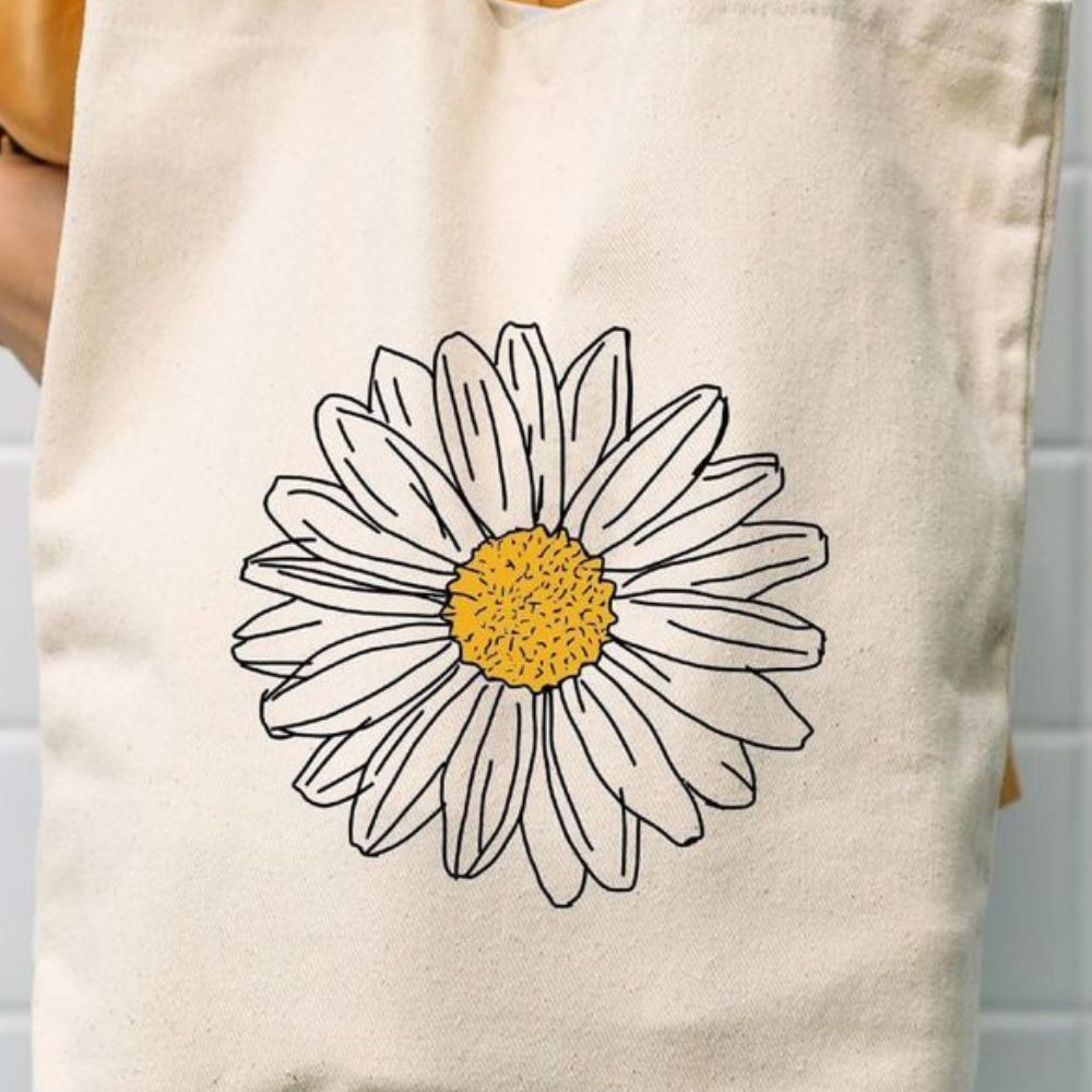 Your daily routine with this elegant canvas tote bag featuring a beautiful daisy print. This reusable, eco-friendly bag is made from high-quality, durable cotton, perfect for carrying your essentials. Whether you're heading to the beach, shopping, or just out for a casual stroll, this bag is your ideal companion. It combines style with functionality, making it a great gift for nature lovers or anyone who values sustainability.