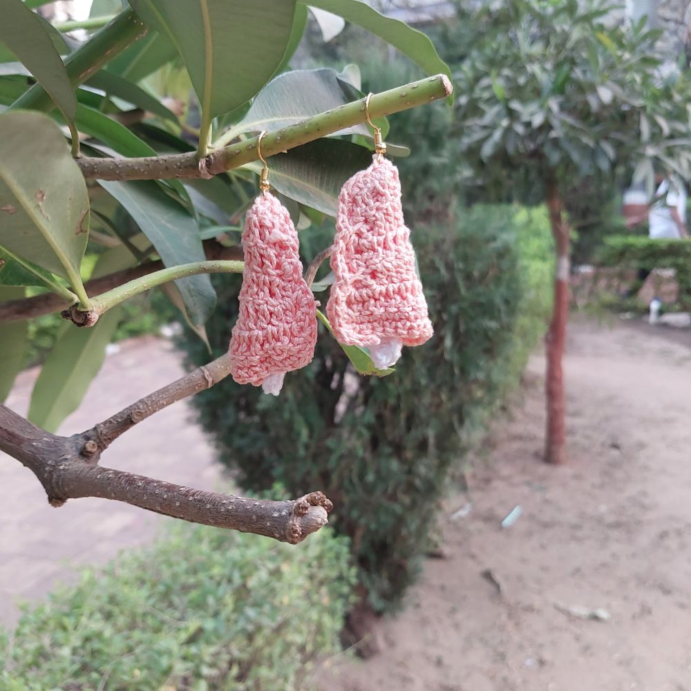 Add a touch of elegance to your ensemble with these handcrafted pink crochet earrings. Beautifully woven in a soft blush pink hue, these earrings feature a delicate floral pattern, making them an ideal accessory for casual outings, festive events, or as a statement piece. Lightweight and comfortable, these earrings are perfect for all-day wear, offering both style and charm.