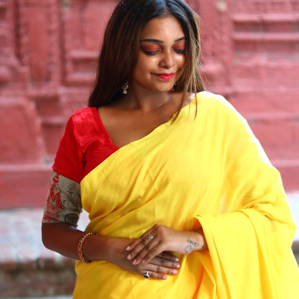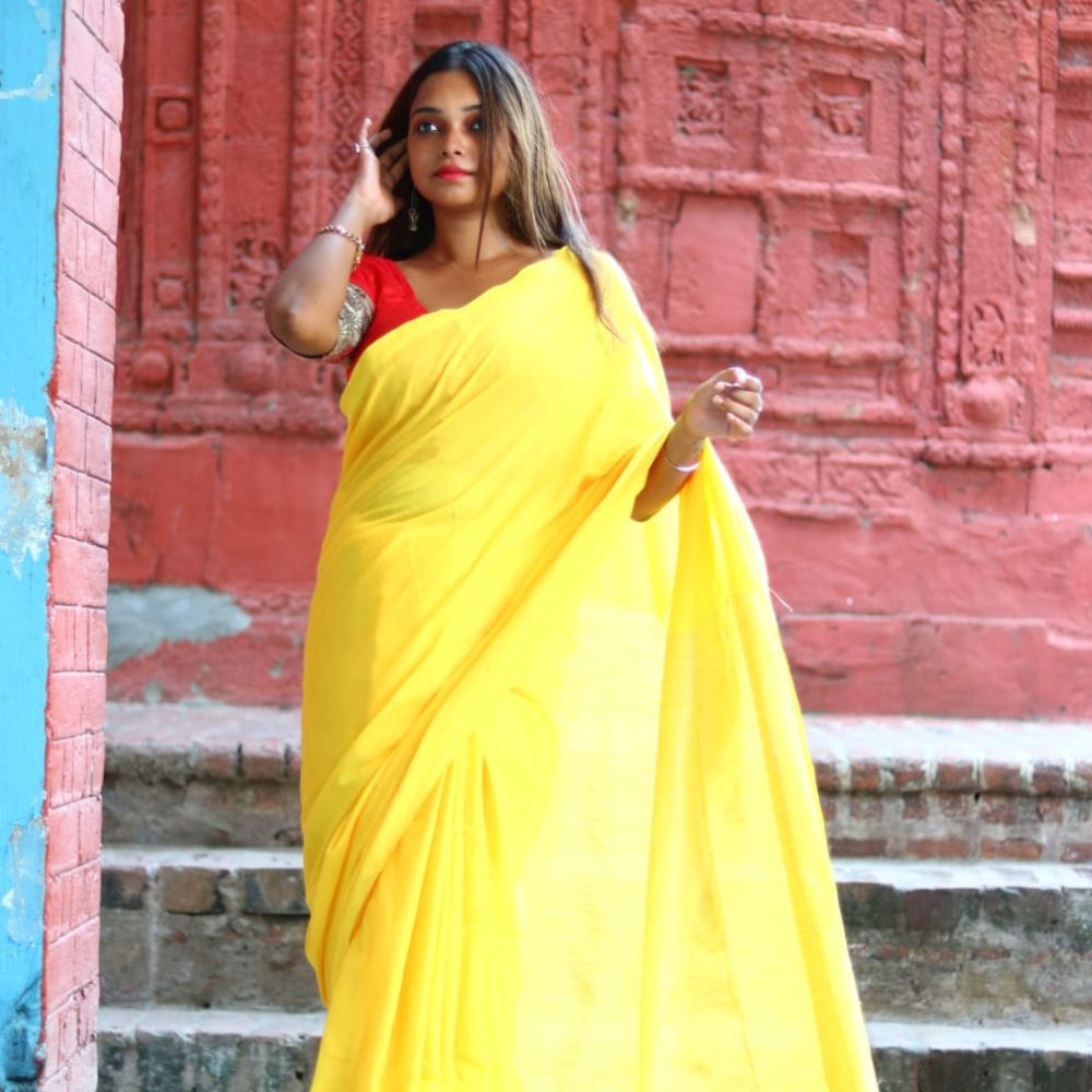 Add a touch of sunshine to your wardrobe with this vibrant yellow saree, beautifully complemented by a shimmering golden aanchal. The plain yellow body symbolizes elegance and positivity, while the golden aanchal adds a regal charm, making it ideal for festive occasions, weddings, or celebratory events. Handwoven with precision, this saree ensures a lightweight and comfortable drape for effortless style throughout the day.