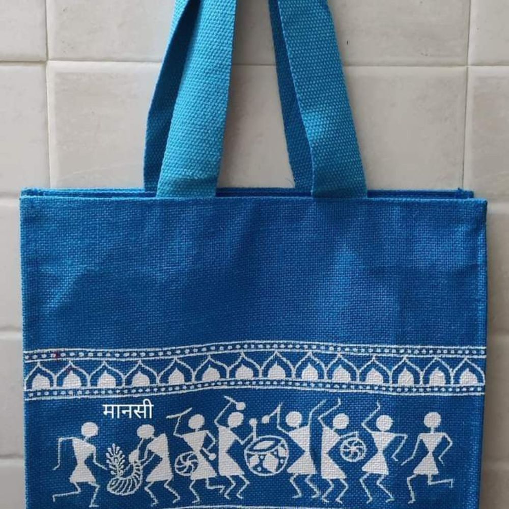 Celebrate the spirit of Indian tribal art with the Ethnic Dance Carry Bag. This vibrant blue jute bag features an intricate Warli-inspired design, depicting a traditional folk dance scene with figures in rhythmic motion. The white motifs stand out beautifully against the bold blue background, bringing the charm of indigenous art into a modern, eco-friendly accessory.