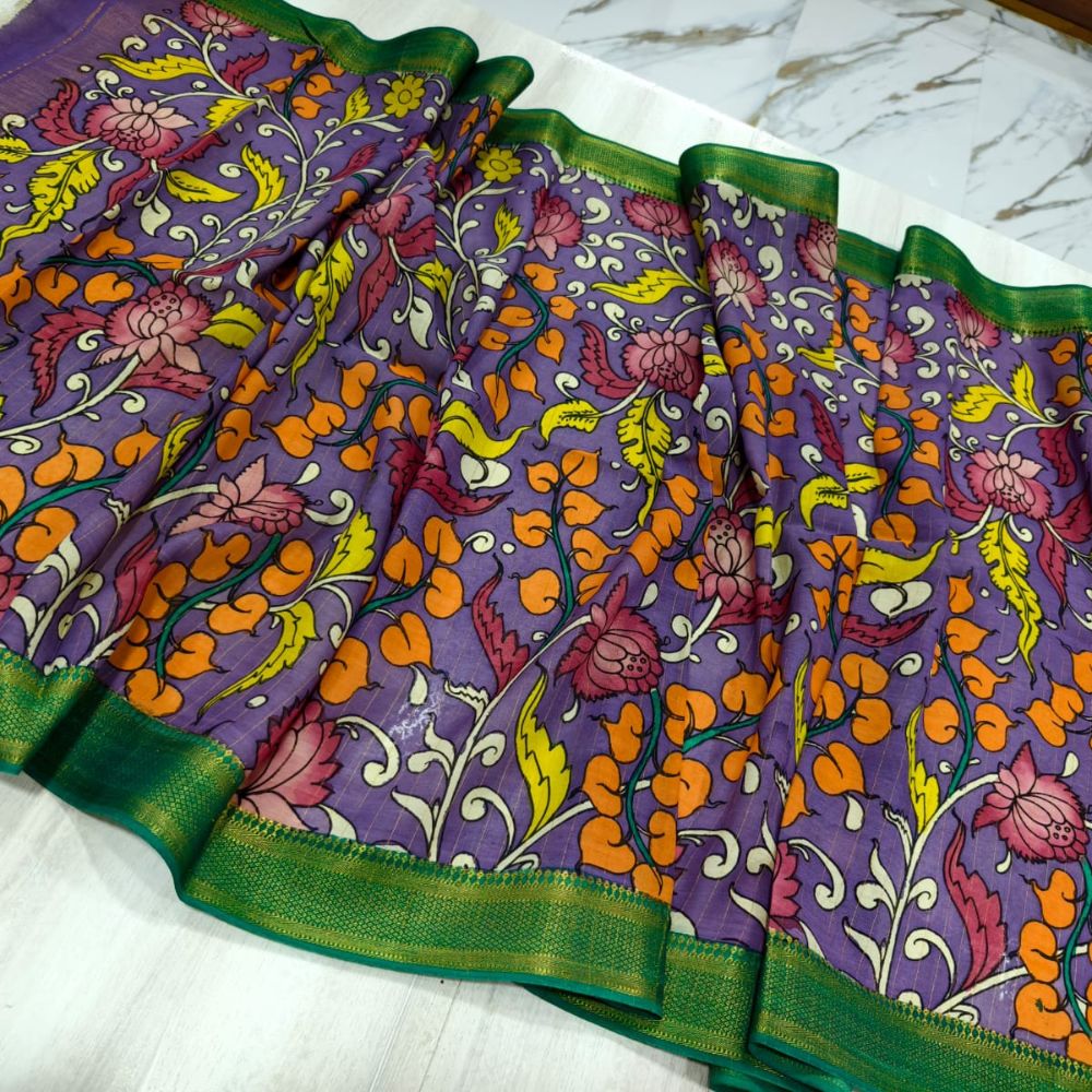 Floral Handprint Kalamkari Dupatta with Bangalore Silk