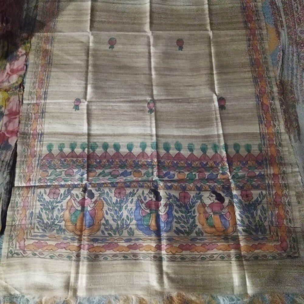 Ghicha Silk Stole with Madhubani Artwork