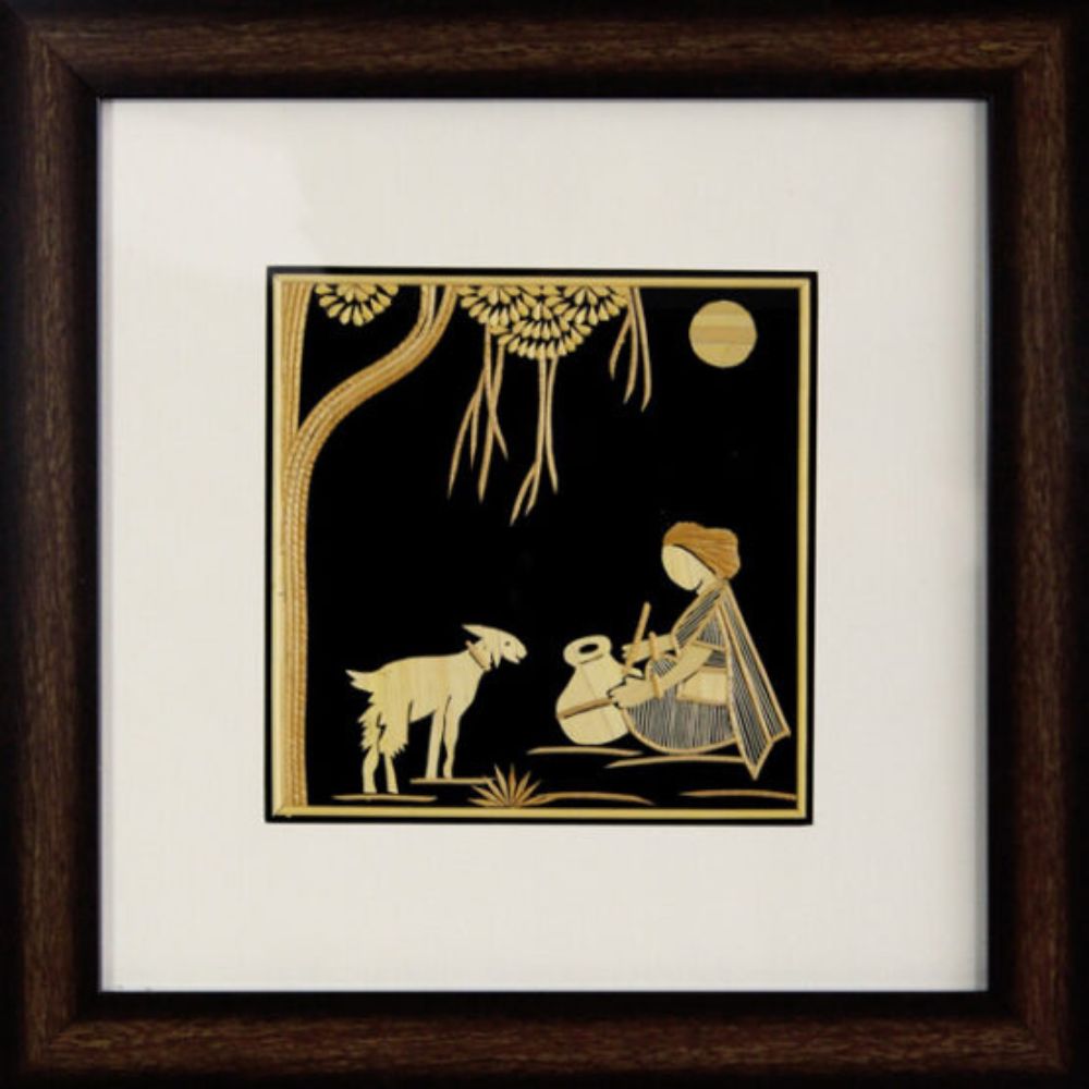 Bring home the elegance of Bihar’s traditional artistry with this exquisite handcrafted Sikki art. This artwork beautifully portrays a rural craftswoman skillfully weaving a basket, symbolizing the rich cultural heritage and craftsmanship of Indian artisans.