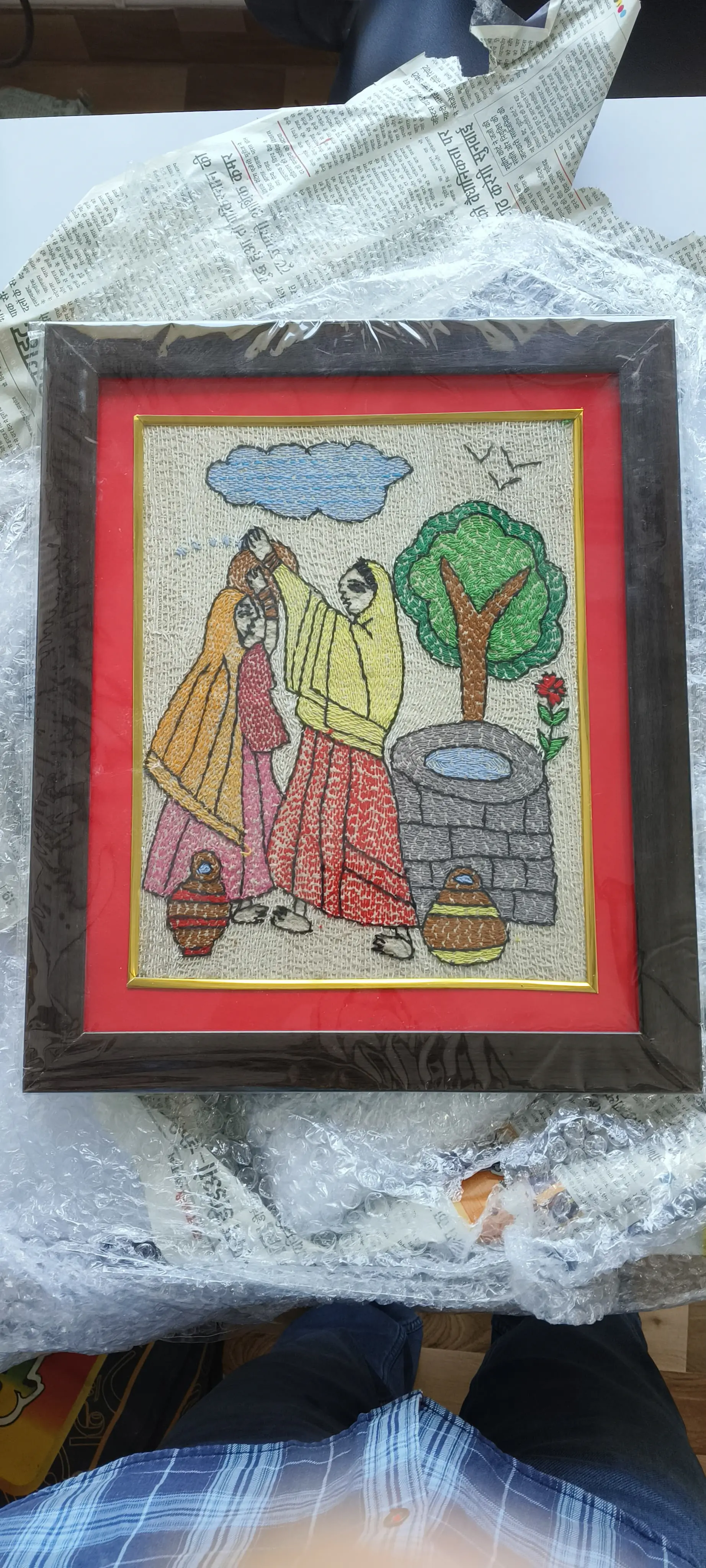 Gramin Milan Framed Sujani Handcrafted Village Life Art