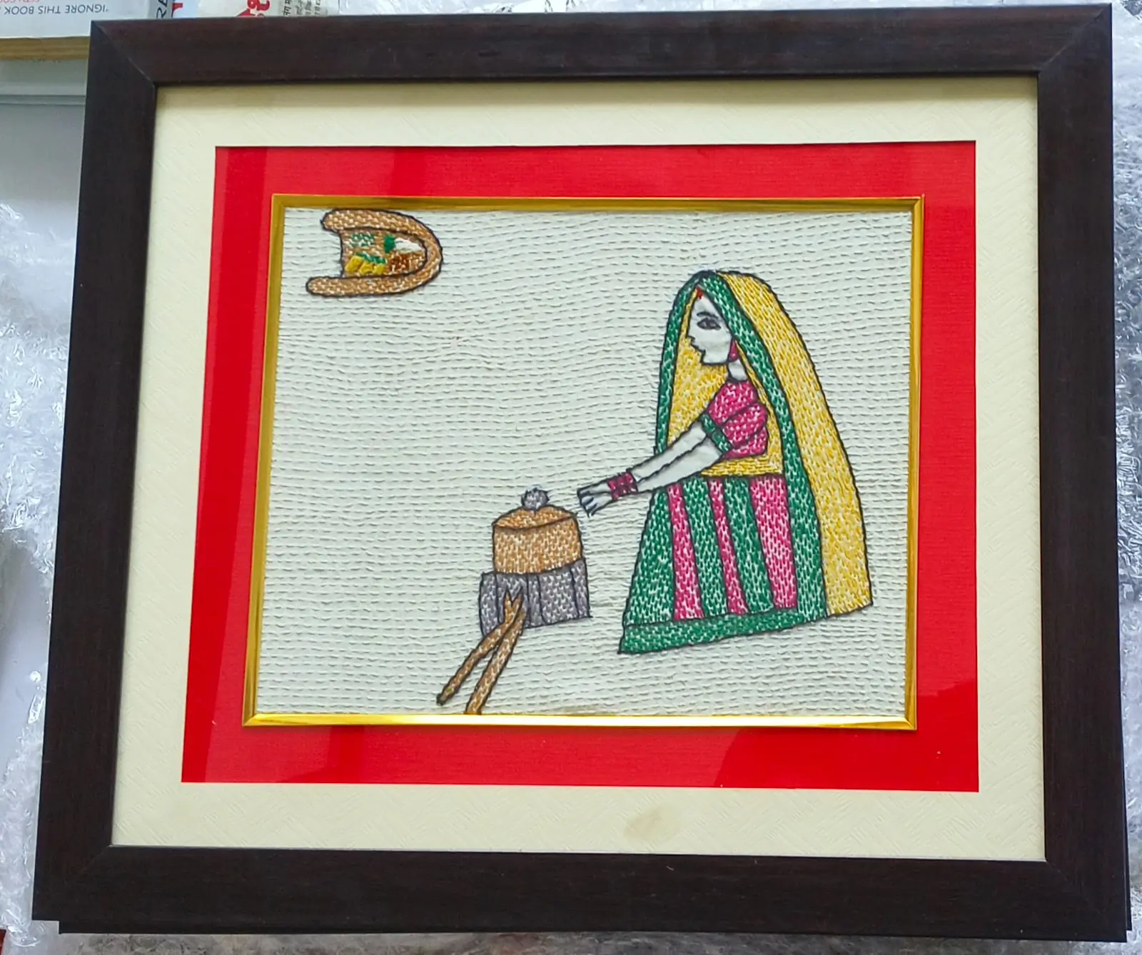 Gramin Rasoi Framed Sujani Handcrafted Cooking Scene Art