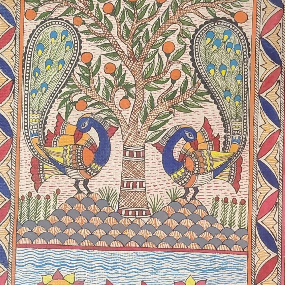 Handcrafted Madhubani Painting Peacocks and Tree of Life