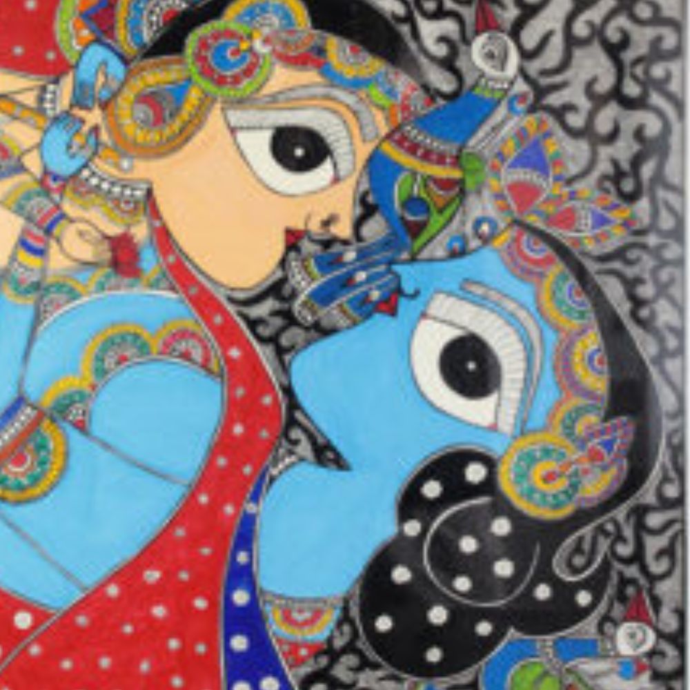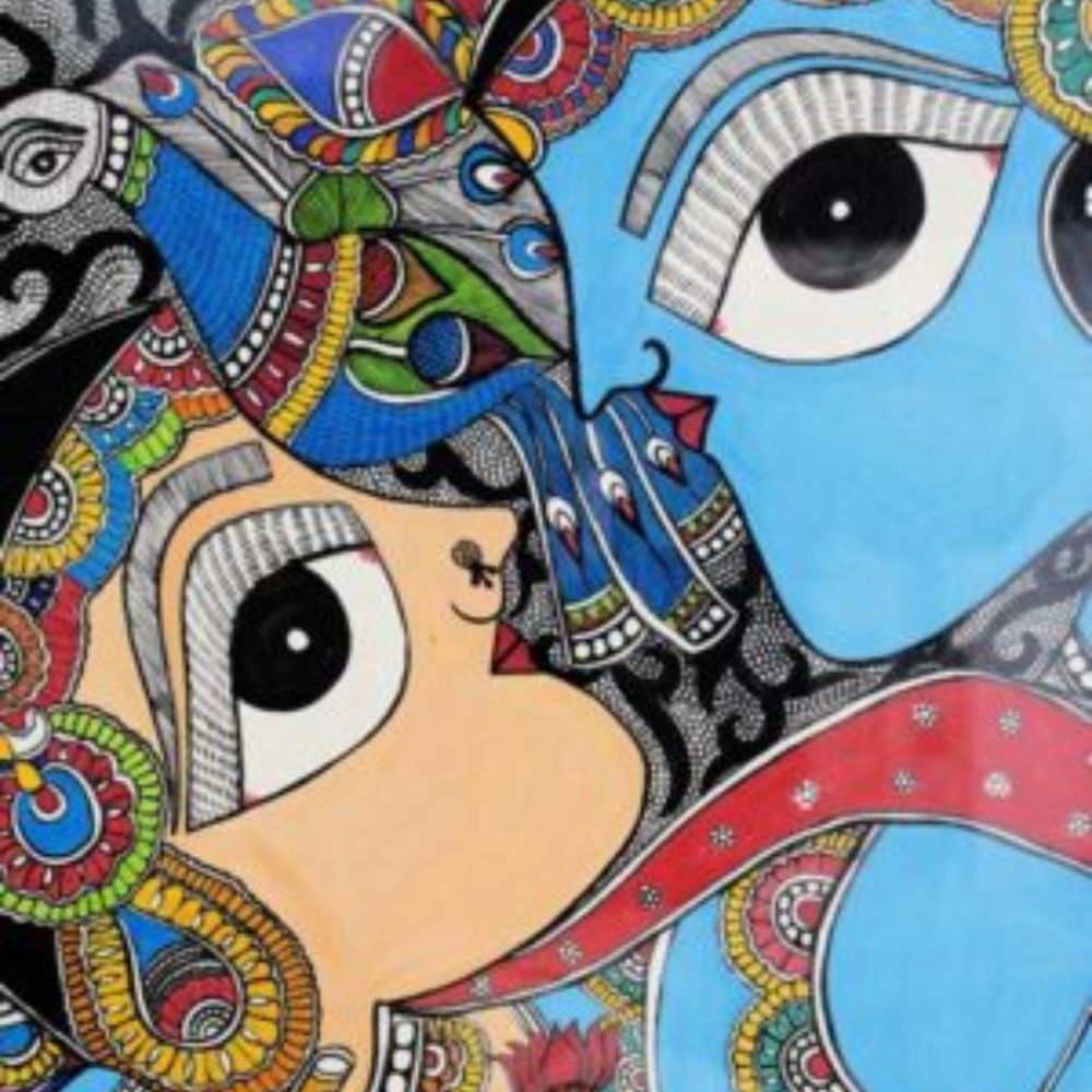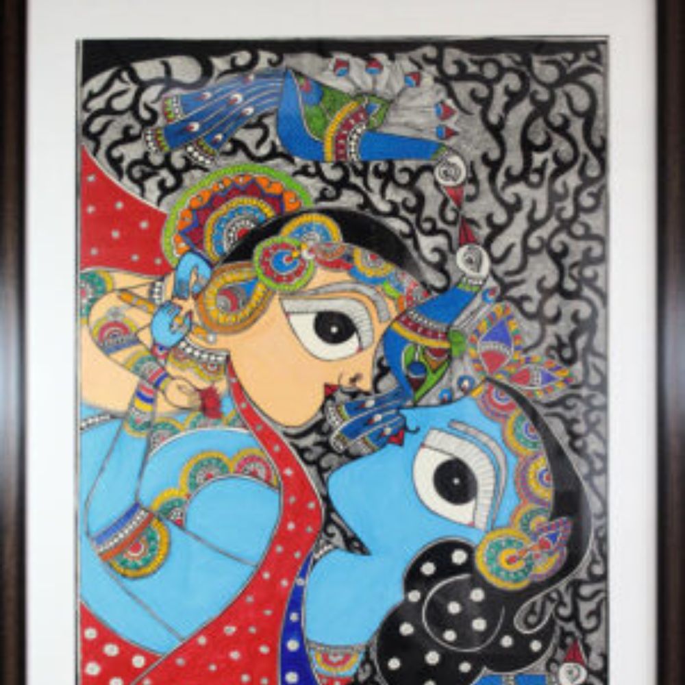 Handcrafted Madhubani Painting – Radha Krishna Love Theme