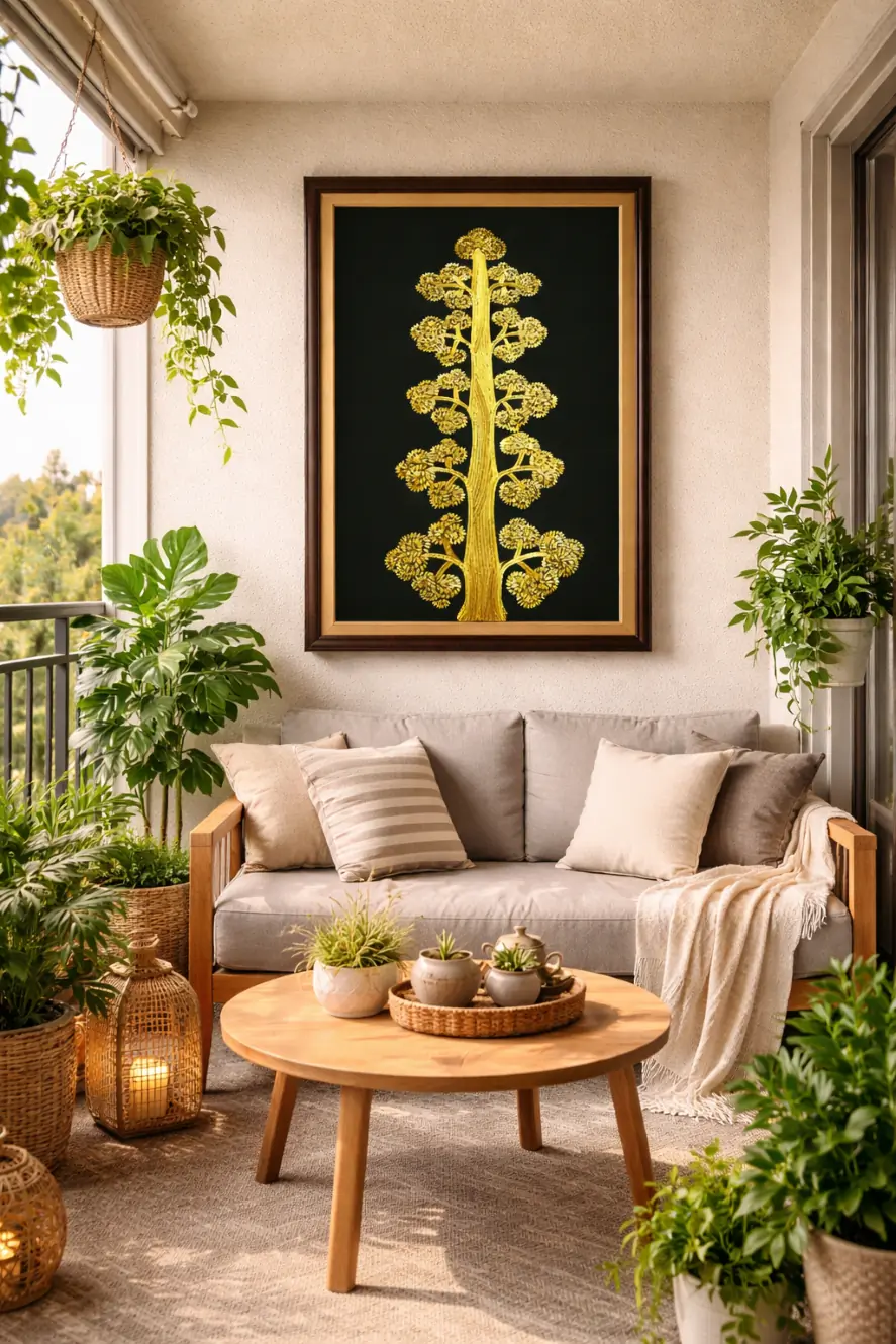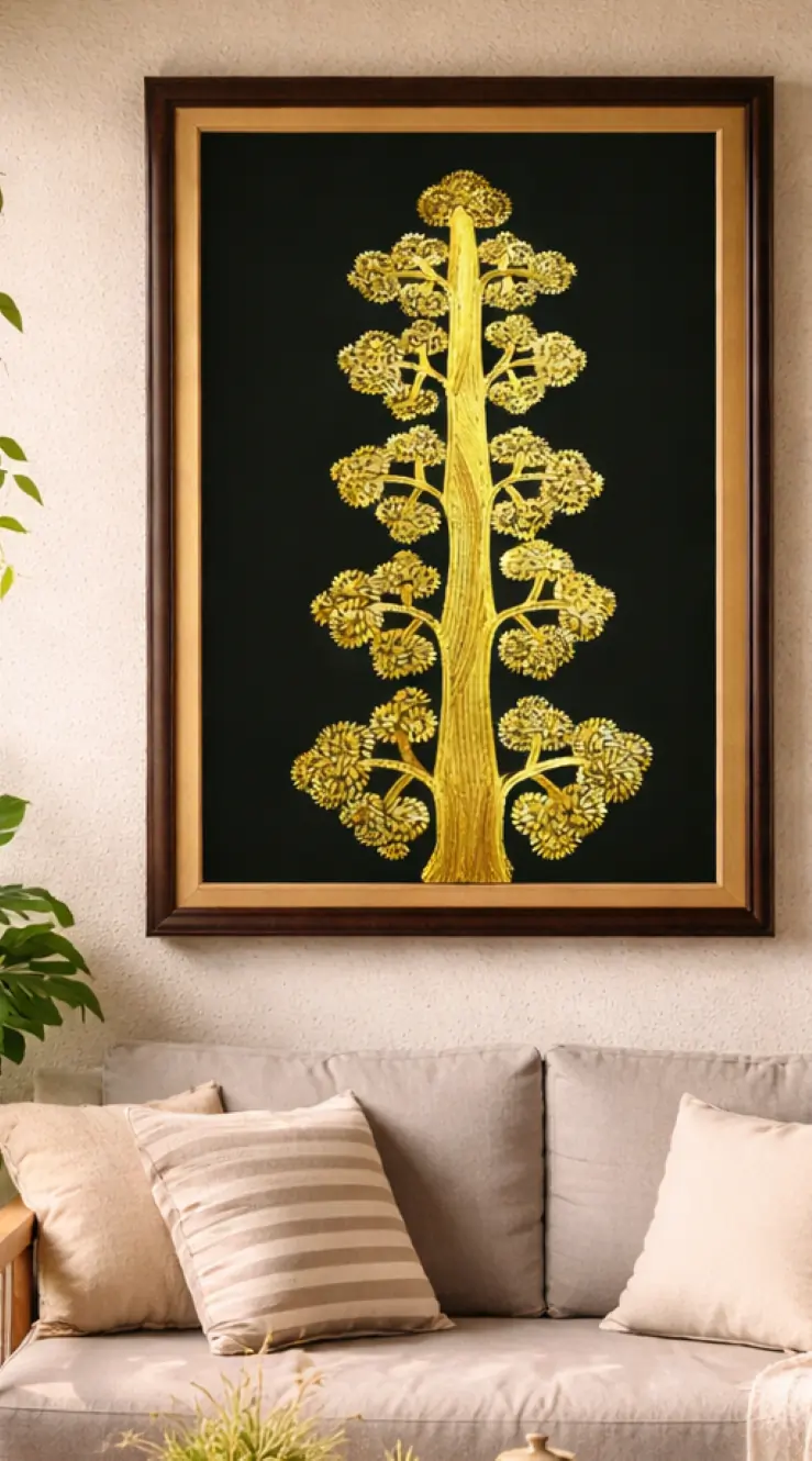 Bring home the beauty of nature with this exquisite handcrafted Sikki grass painting, featuring a beautifully detailed tree symbolizing life, growth, and prosperity. This artwork is meticulously crafted by skilled artisans from Bihar using natural Sikki grass, known for its golden sheen and intricate weaving. The detailed branches and foliage, arranged in a mesmerizing symmetrical pattern, create a sense of harmony and elegance.