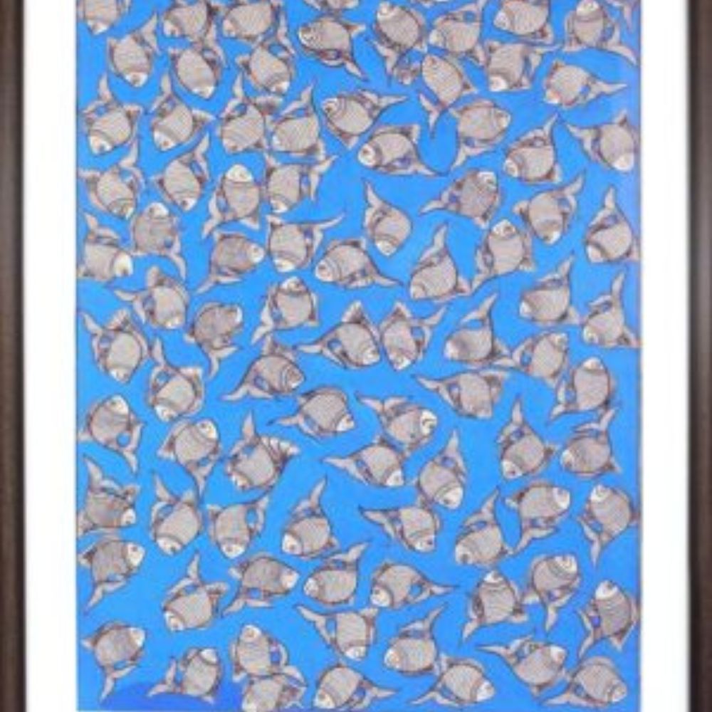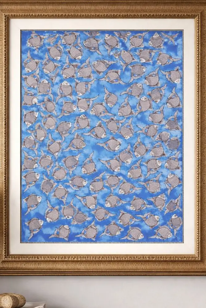 Handmade Madhubani Painting – School of Fish in Motion