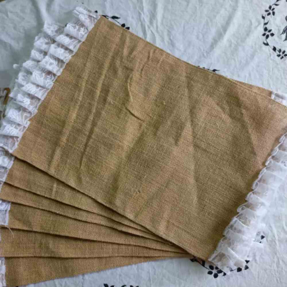 Buy this beautiful Hand made jute tabel mat with beautiful lace design . This will be use as at dinning tabel for keep safe from dirt . Tabel mat are made with jute which is most eco friendly fabric in the world.They will perfectly decorate your table and will save the furniture with extremly hot or cold kitchen too. jute mats are highly sustainable—which means you'll be using them for a long time. Primary function is to protect the dinner table from water marks, food stains or heat damage. Also, jute is