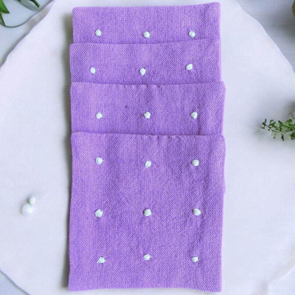 Enhance your table setting with this lavender cotton coaster, beautifully handcrafted with Chikankari embroidery from Uttar Pradesh. Made from 100% handloom fabric, these coasters bring a perfect blend of tradition and elegance to your home decor.