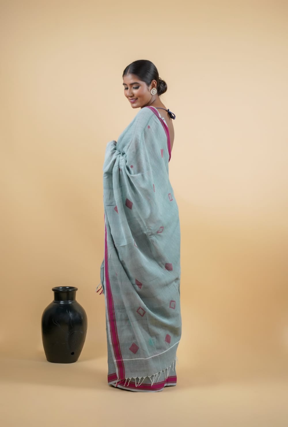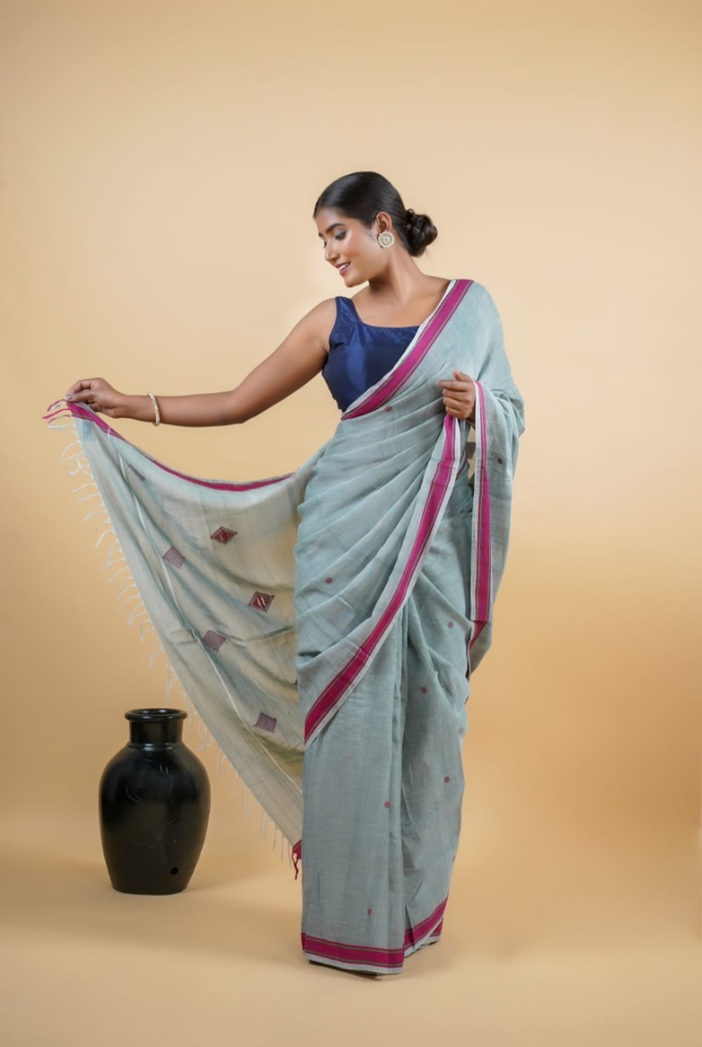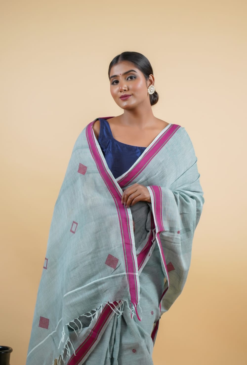 The soft, breathable texture and graceful grey tone make it a versatile piece—perfect for festive occasions, office wear, or casual elegance. A timeless blend of culture and comfort, this saree is a true celebration of Indian handloom tradition.