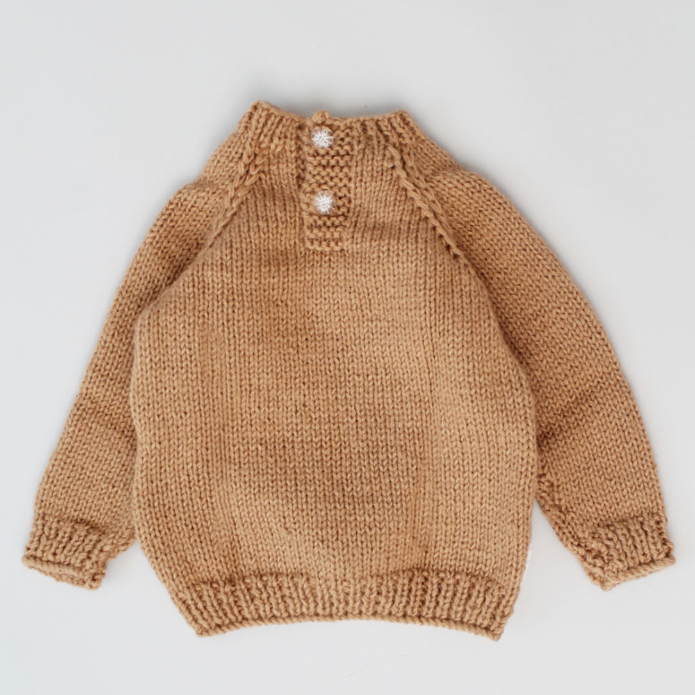 Color: The sweater is a lovely light brown or tan shade, providing a neutral tone that pairs well with other colors.