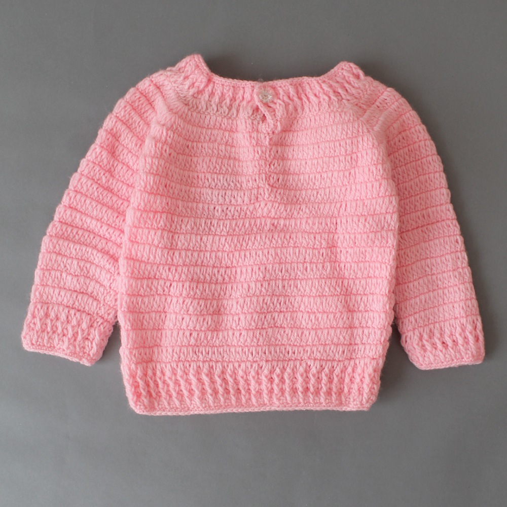 Neck: Round Neck. Closure: There is a button on the back. Crafted with care, each sweater is 100% handmade