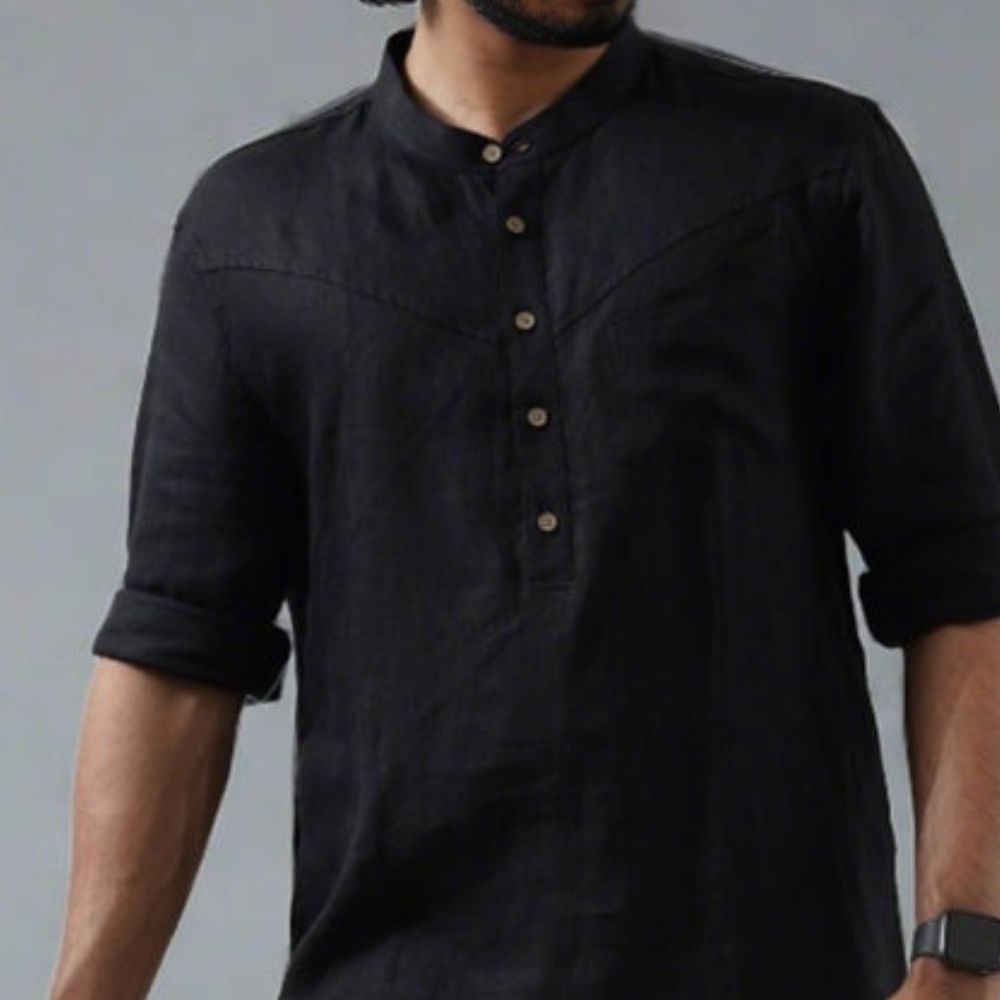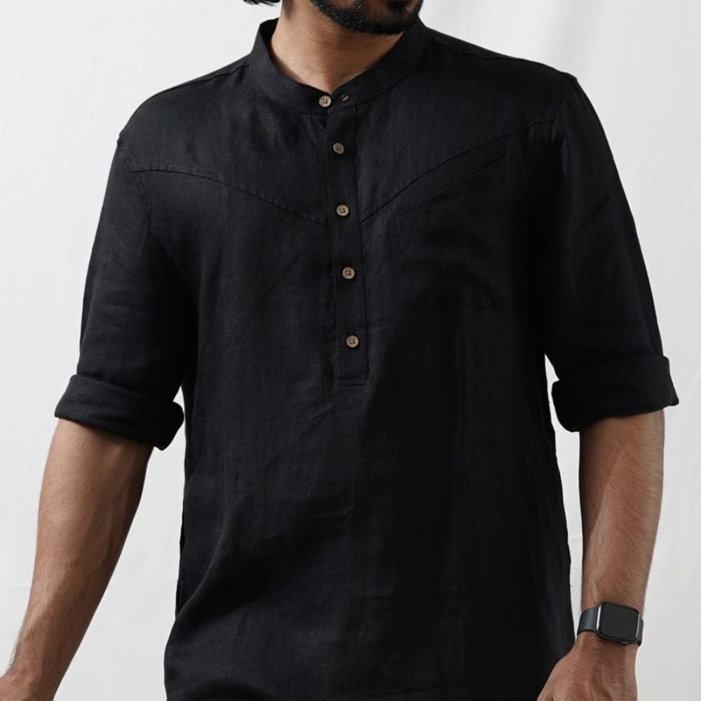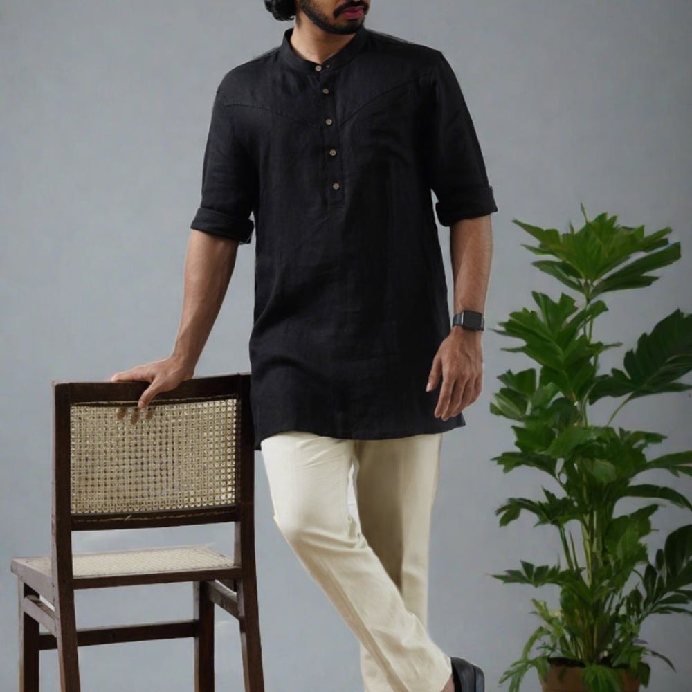 Linen Black Men Kurta