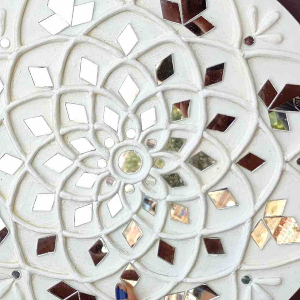 Enhance your home decor with our stunning White Lippan Art Mirror, a beautiful blend of traditional Indian craftsmanship and modern aesthetics. This handcrafted wall mirror features intricate Lippan art in a pristine white color, perfect for adding a touch of elegance to any room. Measuring 12 inches in diameter, this mirror is ideal for your living room, bedroom, or entryway, bringing a unique ethnic charm to your space.