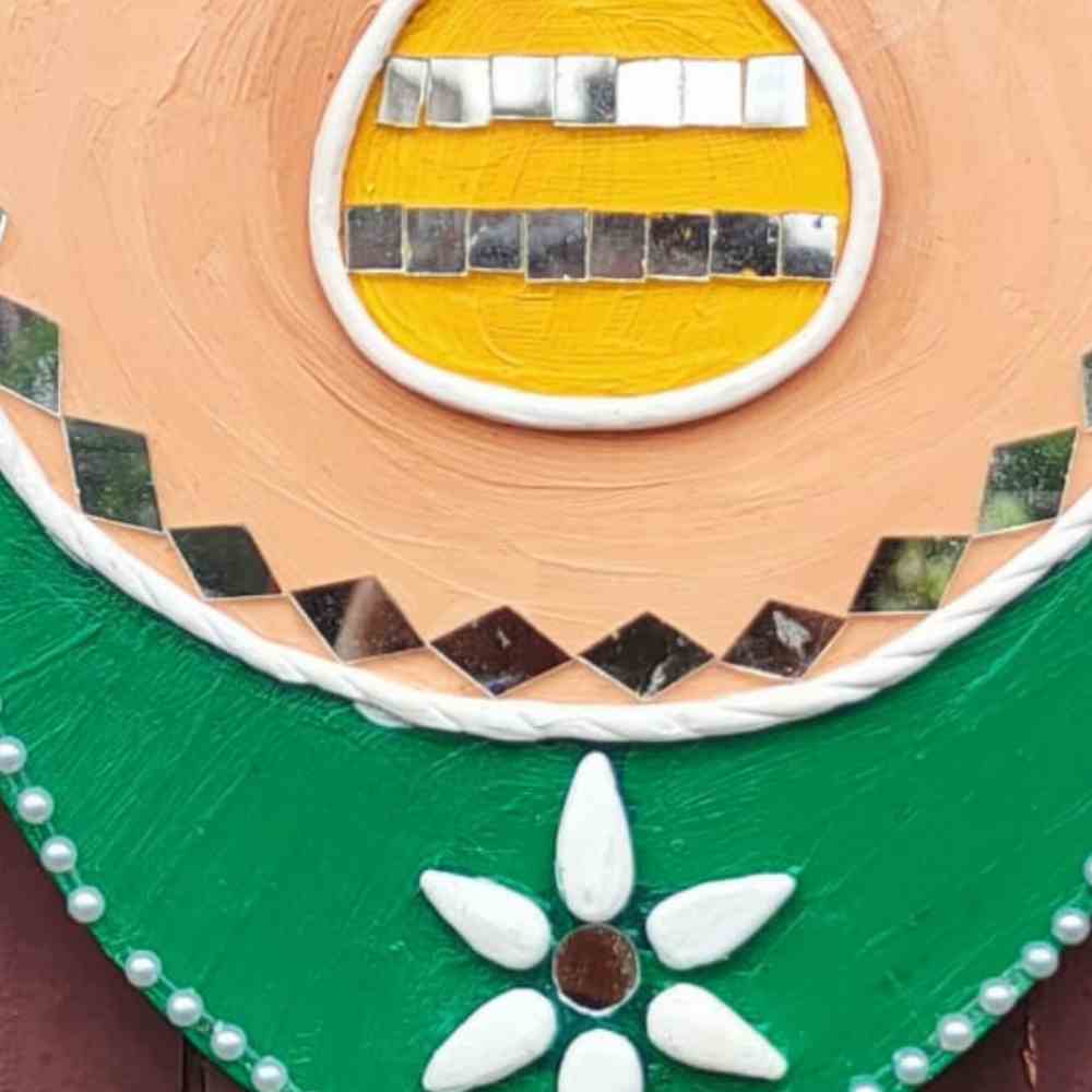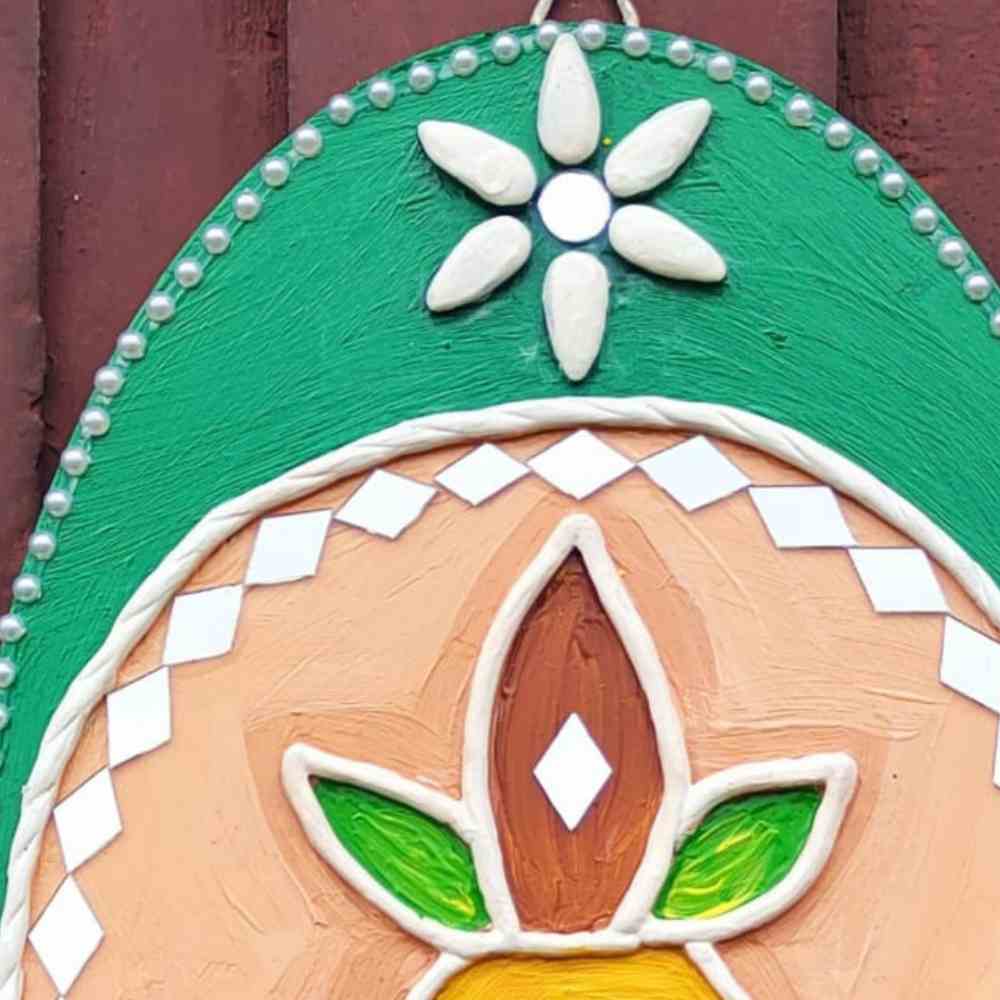 Lippan art originating from the rural regions of Gujarat India is a stunning form of wall decor that intricately combines mud and mirrors to create mesmerizing patterns and designs. Each piece tells a story of tradition culture and craftsmanship bringing warmth and vibrancy to any space. With its earthy tones and reflective surfaces lippan art adds a touch of rust.