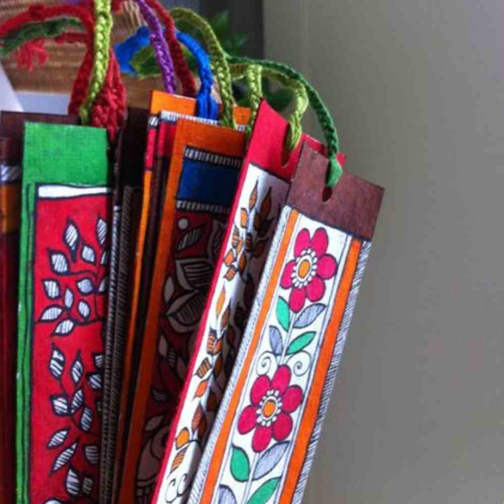 Traditional madhubani handpainted bookmark, with natural colors on handmade paper by artisan  from Bihar. These are priceless collection for art lover. Bookmarks are objects to be used by people again and again at the time of reading and can become a reader's trusted companion and one bookmark can be used over and over again for different books. In addition to being useful, they are beautiful, fun, and engaging - essentially, they inspire people to want to use them.Book mark can be made from paper.