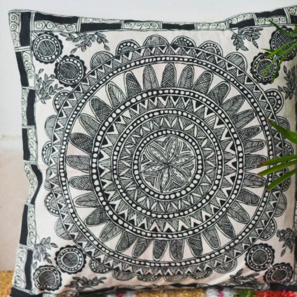 • Hand-painted Madhubani design: Each cushion is carefully hand-painted by skilled artisans, ensuring no two are exactly alike.