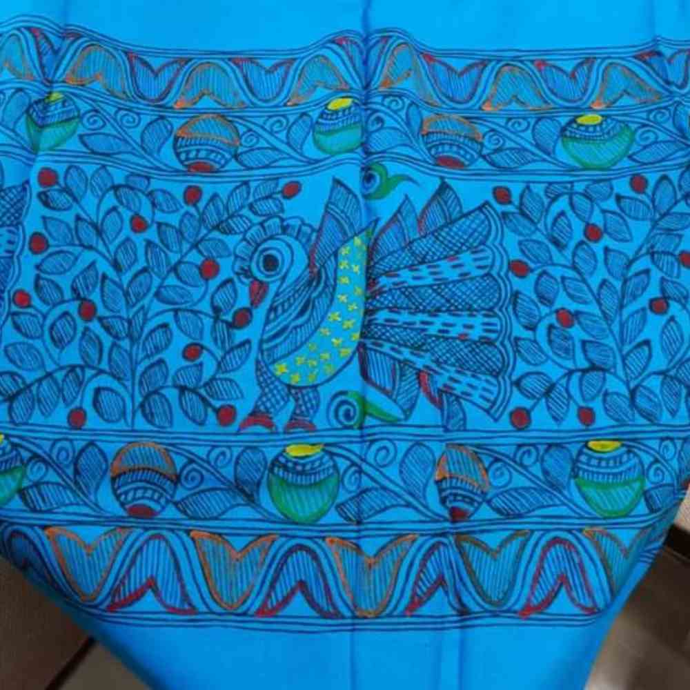 Madhubani Painting Blue Colour Stole Peacock Style