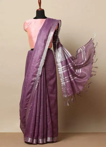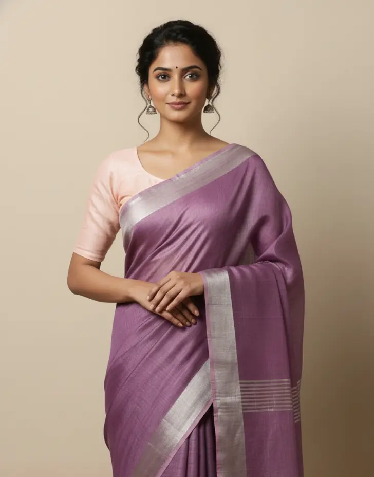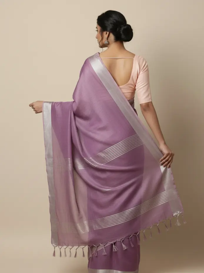 This handwoven cotton saree is crafted by skilled artisans on traditional looms, celebrating subtle color play and timeless simplicity. The soothing lavender hue paired with a muted silver border adds understated elegance, making it perfect for workdays, cultural gatherings, and relaxed occasions. Each piece carries the quiet beauty of authentic handloom craftsmanship.