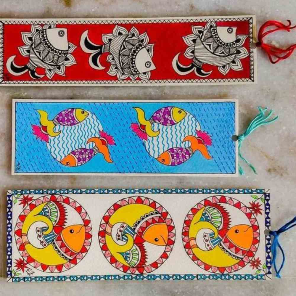 Traditional madhubani handpainted bookmark, with natural colors on handmade paper by artisan  from Bihar. These are priceless collection for art lover. Bookmarks are objects to be used by people again and again at the time of reading and can become a reader's trusted companion and one bookmark can be used over and over again for different books. In addition to being useful, they are beautiful, fun, and engaging - essentially, they inspire people to want to use them.Book mark can be made from paper.