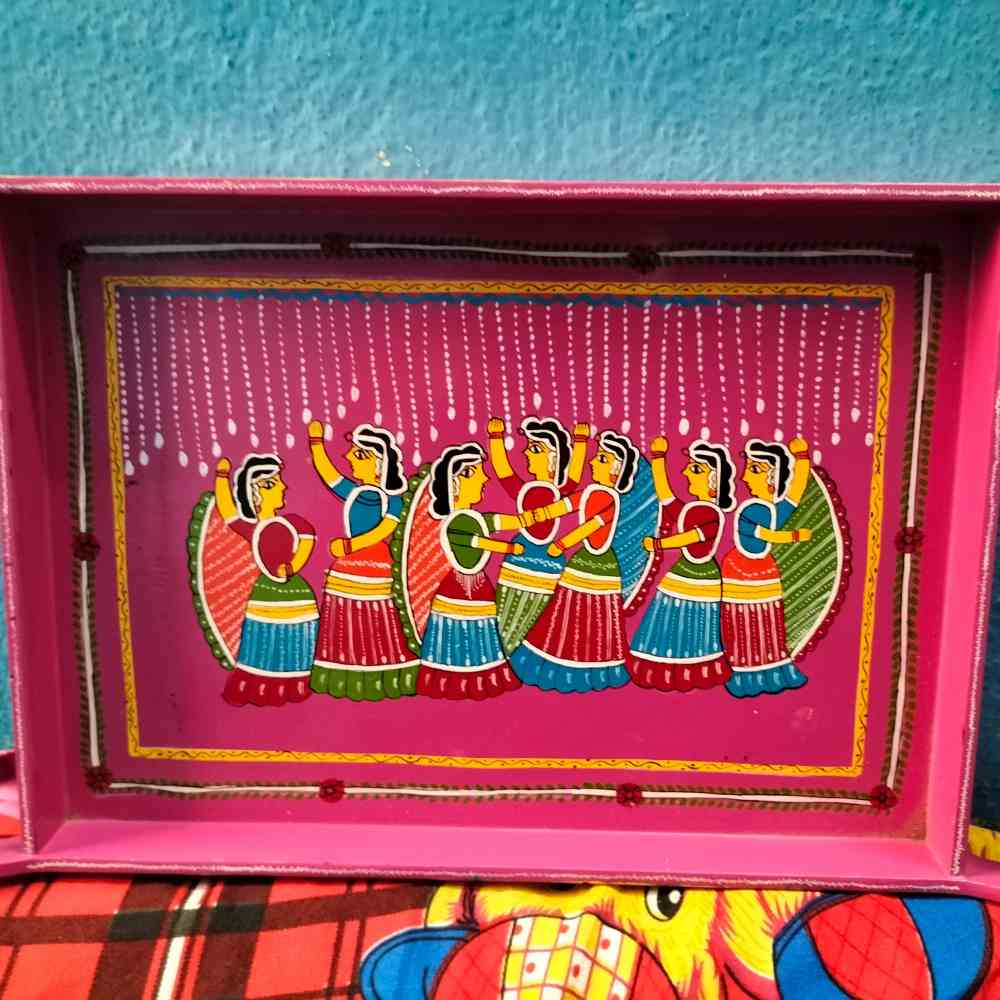 Bring a touch of Indian heritage into your home with this stunning Tikuli art tray, handcrafted from high-quality MDF/wood. Showcasing the vibrant and intricate designs of traditional Tikuli art, this tray serves both as a functional piece and a decorative masterpiece.
