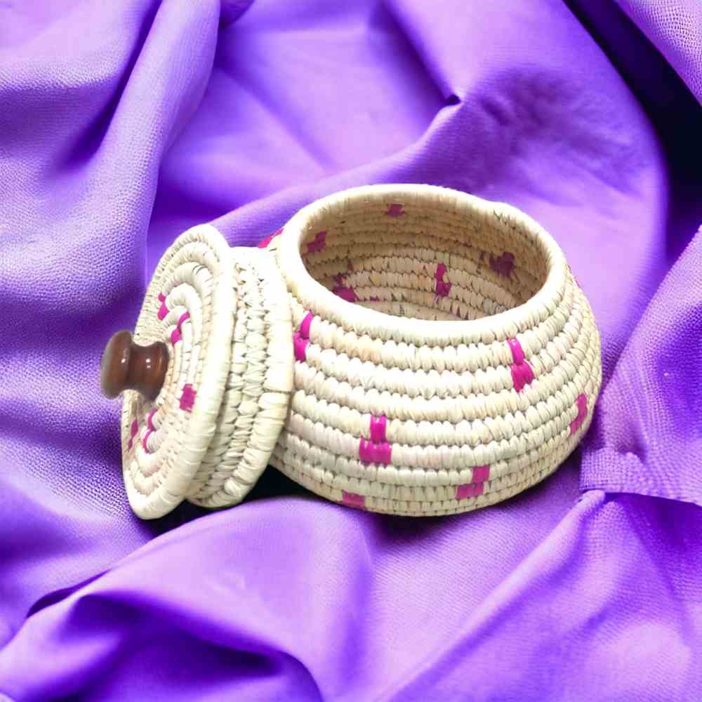 Versatile and functional, the Pink Patterned Sabai Grass Basket can be used for a variety of purposes, including: