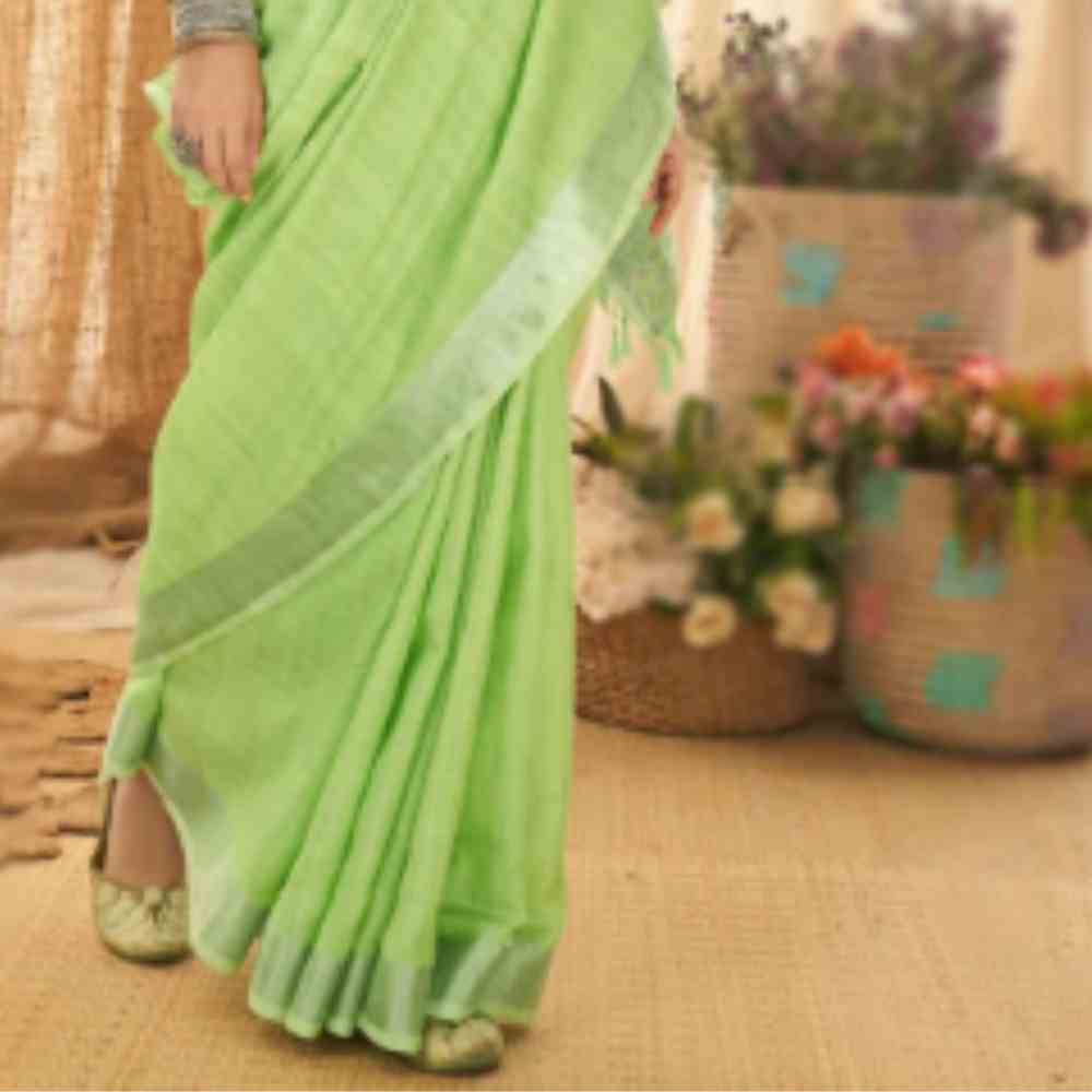 Crafted from the finest quality pure linen fabric, this saree offers a luxurious feel and elegant drape. The breathable and lightweight nature of linen makes it perfect for all-day wear, ensuring comfort without compromising on style.