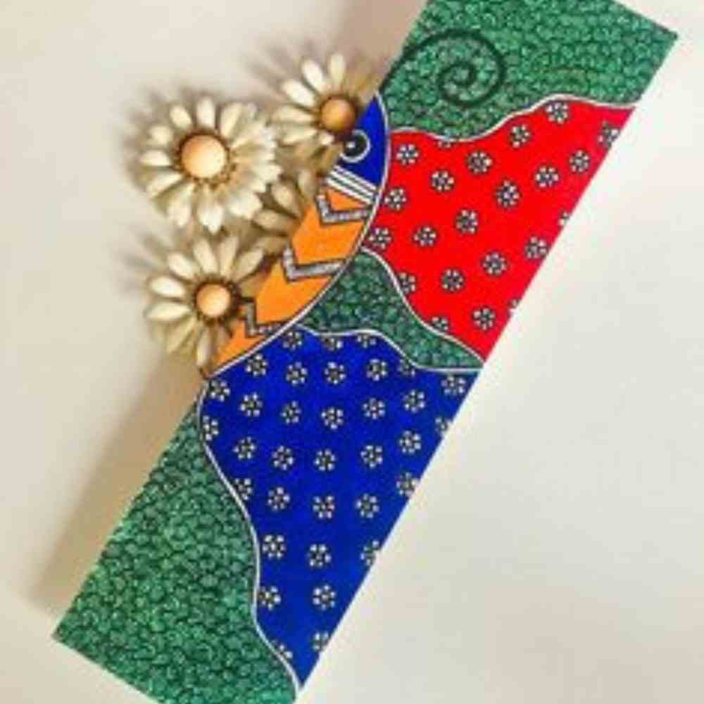 Traditional madhubani handpainted bookmark, with natural colors on handmade paper by artisan  from Bihar. These are priceless collection for art lover. Bookmarks are objects to be used by people again and again at the time of reading and can become a reader's trusted companion and one bookmark can be used over and over again for different books. In addition to being useful, they are beautiful, fun, and engaging - essentially, they inspire people to want to use them.Book mark can be made from paper