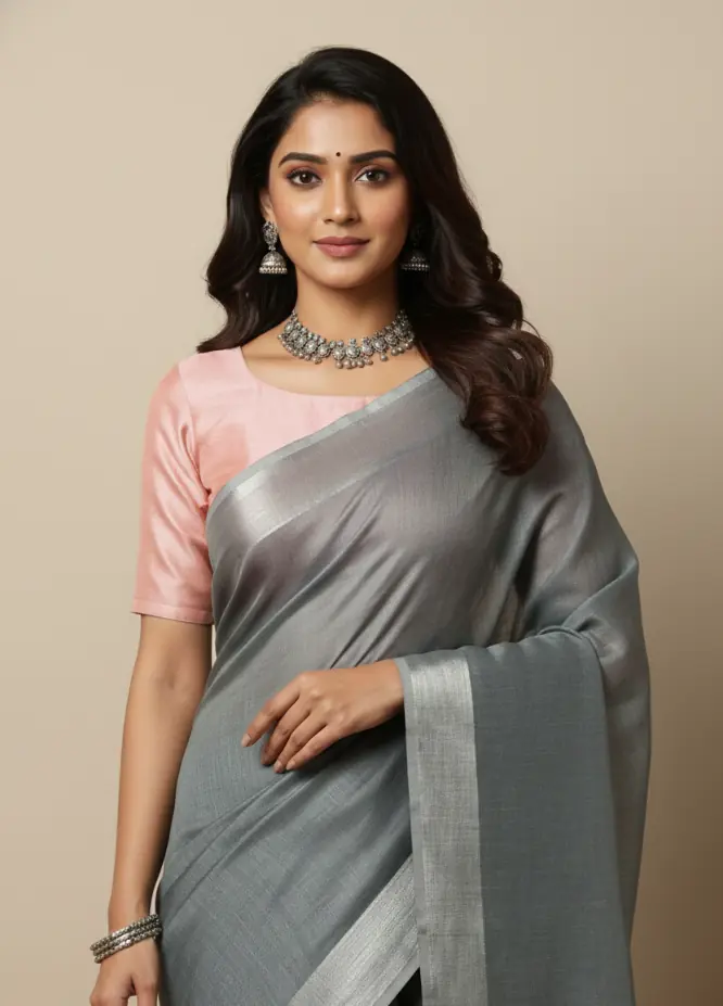 This handwoven cotton saree is thoughtfully crafted by skilled artisans on traditional looms, celebrating minimal design and quiet sophistication. The cool grey hue paired with a subtle silver-toned border creates a timeless look, making it ideal for workdays, cultural gatherings, and effortless everyday wear. Each piece reflects the authenticity of handloom craftsmanship.