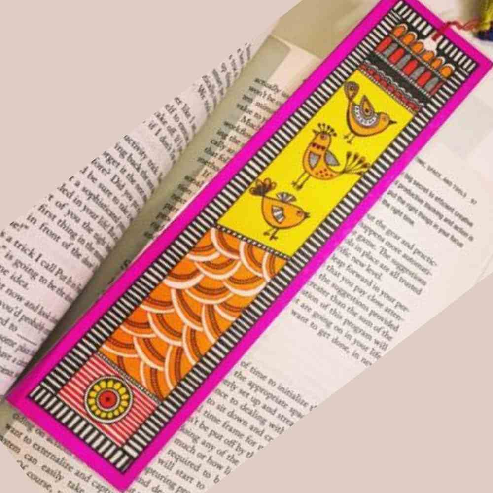 Traditional madhubani handpainted bookmark, with natural colors on handmade paper by artisan  from Bihar. These are priceless collection for art lover. Bookmarks are objects to be used by people again and again at the time of reading and can become a reader's trusted companion and one bookmark can be used over and over again for different books. In addition to being useful, they are beautiful, fun, and engaging - essentially, they inspire people to want to use them.Book mark can be made from paper.