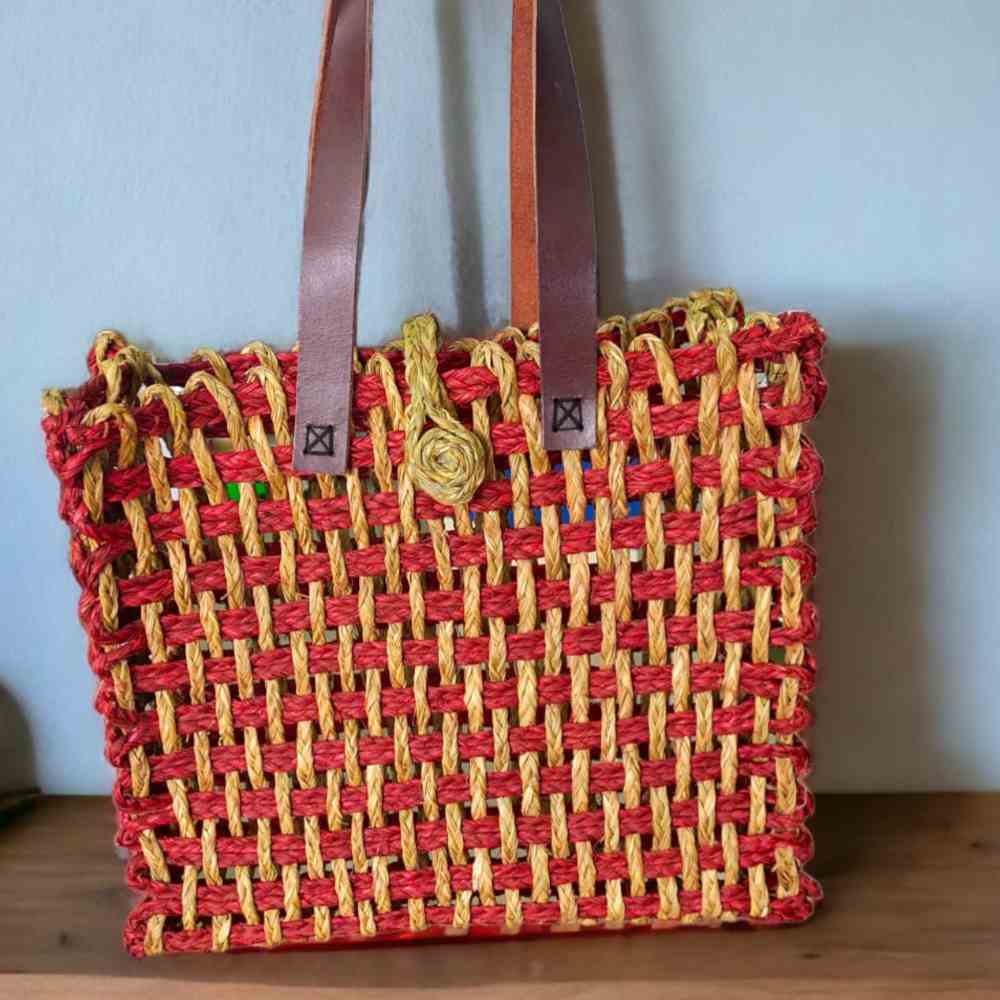 Introducing our Handmade Red Yellow Handmade Sabai Grass Mesh Bag, a vibrant and eco-friendly accessory that blends functionality with style. Handcrafted by skilled artisans using natural Sabai grass, this mesh bag features a striking combination of red and yellow hues, adding a pop of color to any outfit.