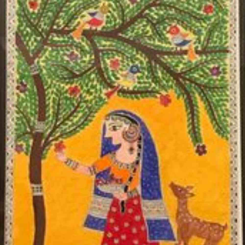 Serenity's Embrace: Woman with Deer Madhubani Painting