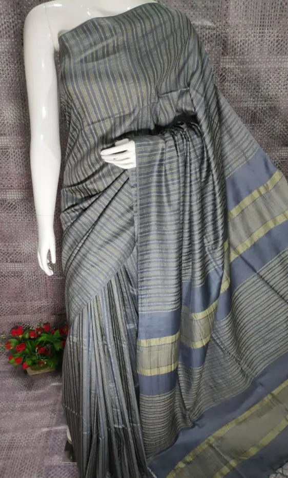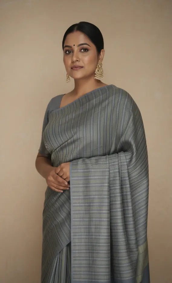 This handwoven cotton saree is carefully crafted by skilled artisans from Telangana using traditional pit-loom weaving techniques. The slate blue base, highlighted with fine grey stripes and muted sage-green borders, reflects understated sophistication and balance. Perfect for office wear, cultural gatherings, and everyday styling, each saree is slowly woven on heritage looms, preserving authentic handloom artistry.