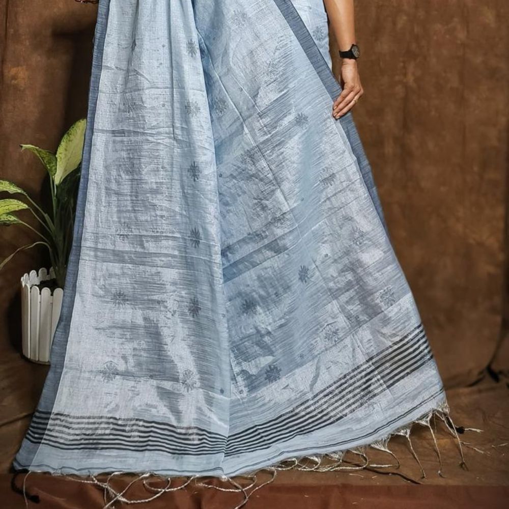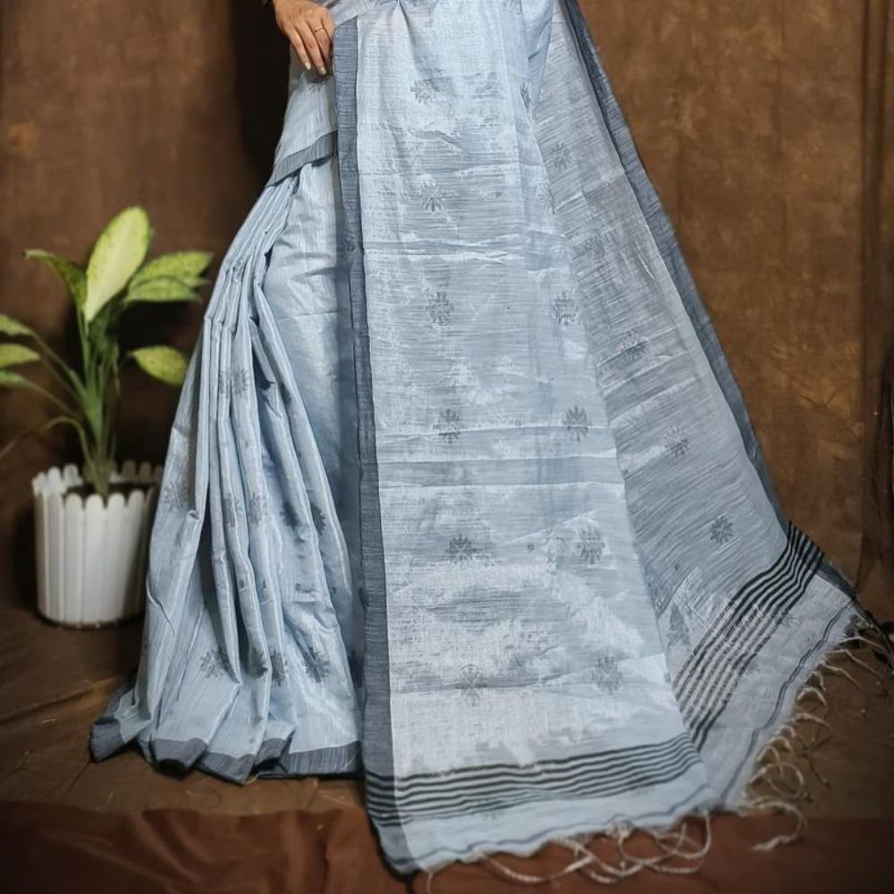 Sophisticated Grey Tissue Silk Jamdani Saree for Women