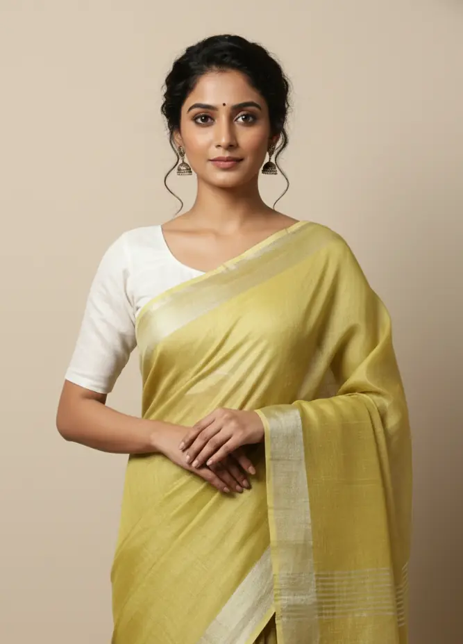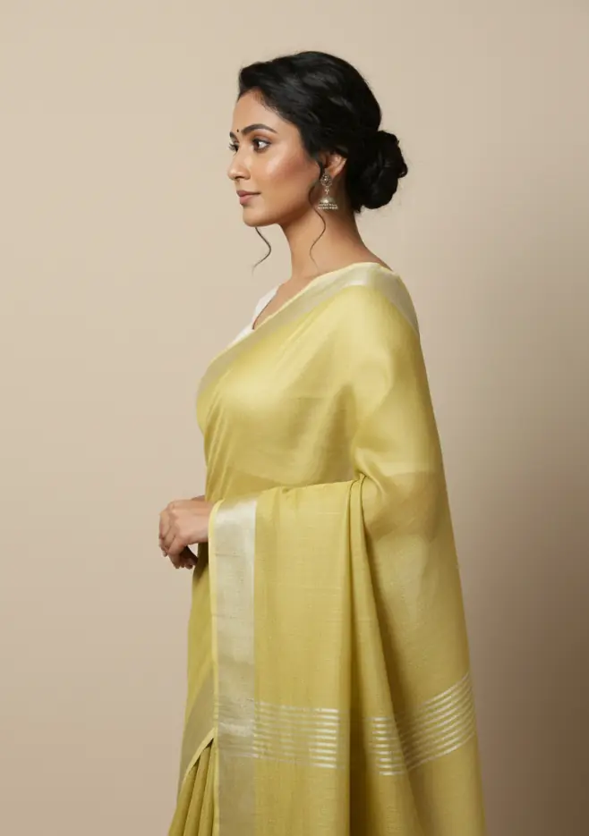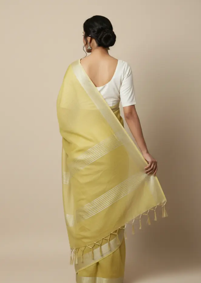 A soft handwoven cotton saree in a gentle mustard hue, crafted for everyday elegance and breathable comfort.