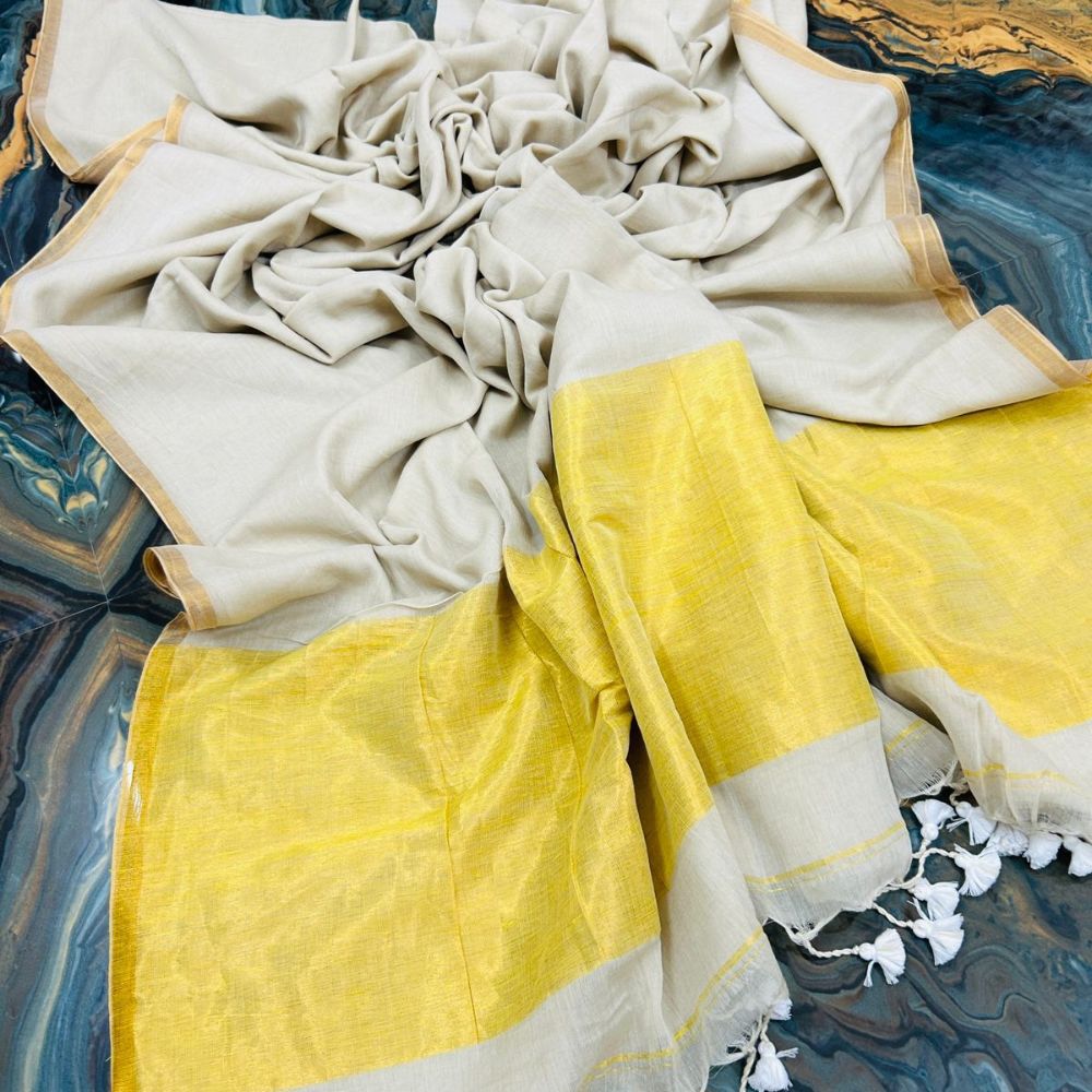 Timeless Creme Mul Cotton Saree with Golden Jari Border