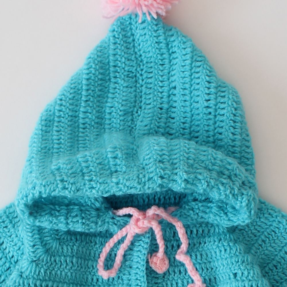 Neck: The sweater boasts a hood, perfect for keeping little heads warm. The hood has an adorable pink pom-pom on top, adding a fun element.